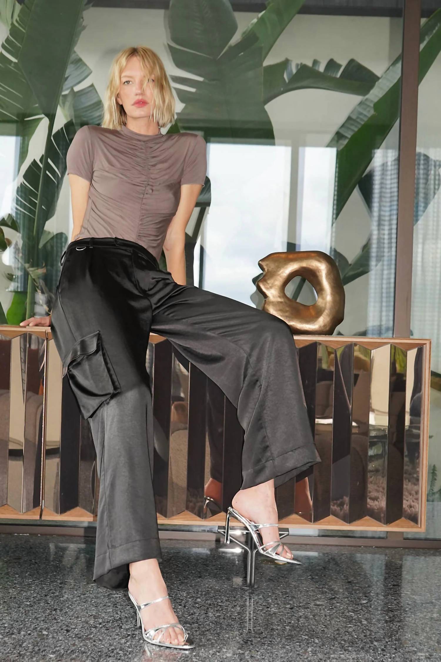 Lou — это свободные брюки-карго свободного кроя с передними карманами и привлекательными складками по бокам. 100% полиэстер. Соответствует размеру. Удобная посадка.