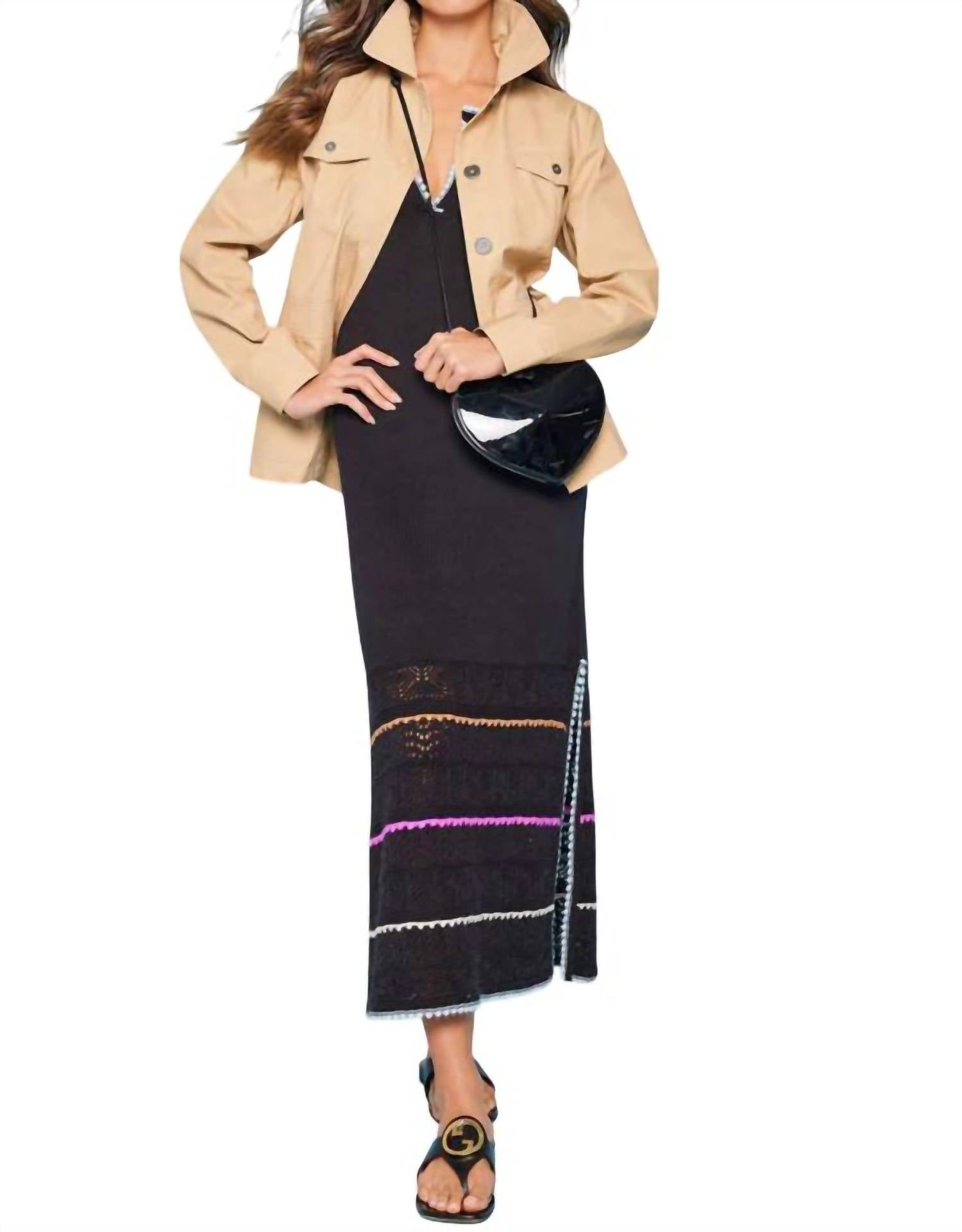 Просто добавьте шлепанцы или мюли, и вы готовы к выходу. Представляем Beach Please Dress от LISA TODD, идеальное сочетание комфорта и изысканности для лета. Это платье-трапеция без рукавов выполнено из мягкой хлопковой смеси, обещающей прохладную носку в теплые дни. Платье имеет стильный V-образный вырез и застежку-липучку, источая непринужденный стиль без карманов. Идеально подходит для тех, кто ищет изысканный образ в сплошном черном цвете, это женское платье-миди станет вашим новым выбором для солнечных прогулок.