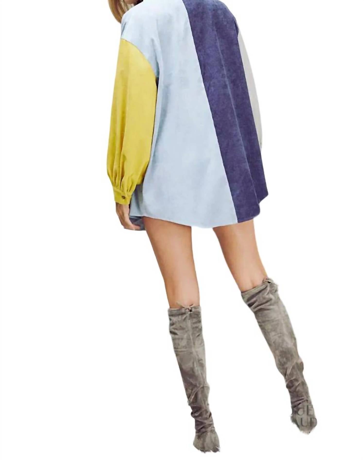 Рубашка Patrice Color Block Shirt — это свободная вельветовая рубашка без подкладки, изготовленная из 95% полиэстера и 5% спандекса. Она имеет застежку на пуговицы спереди, длинные рукава, нагрудный карман с клапаном и дизайн с цветовыми блоками, подходящий для многослойности. Стирать вручную в холодной воде; не отбеливать. Импортируется.