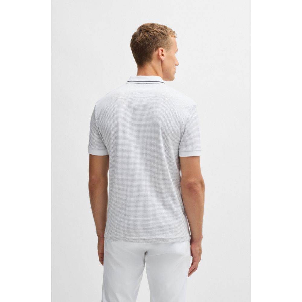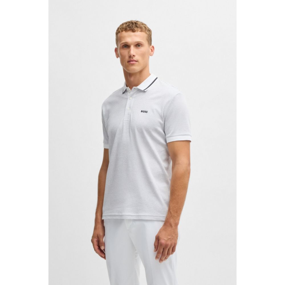 Рубашка поло от BOSS Menswear, украшенная полосатым воротником и мини-жаккардовым узором. Этот топ из чистого хлопка имеет стандартный крой.