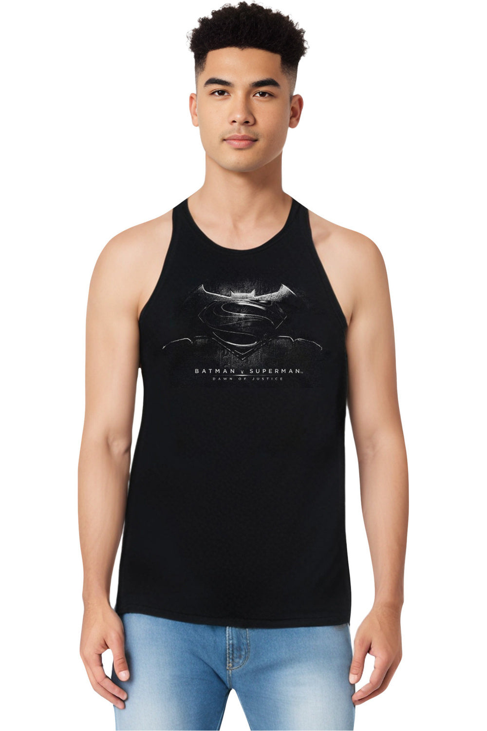 Бэтмен против Супермена Bw Логотип Взрослая майка Gildan, черный