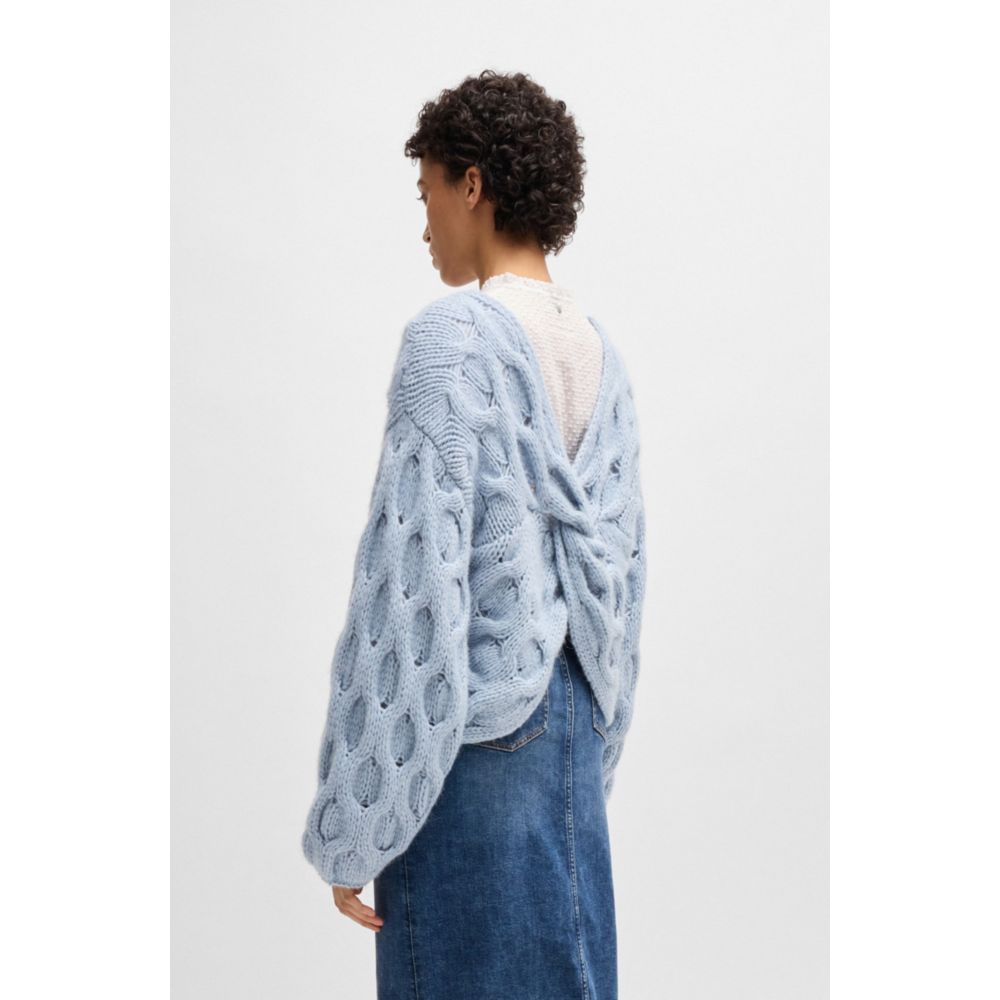 Свитер косичной вязки от BOSS Womenswear. Этот свободный свитер, который можно носить любой стороной, выполнен из шерсти и альпаки.