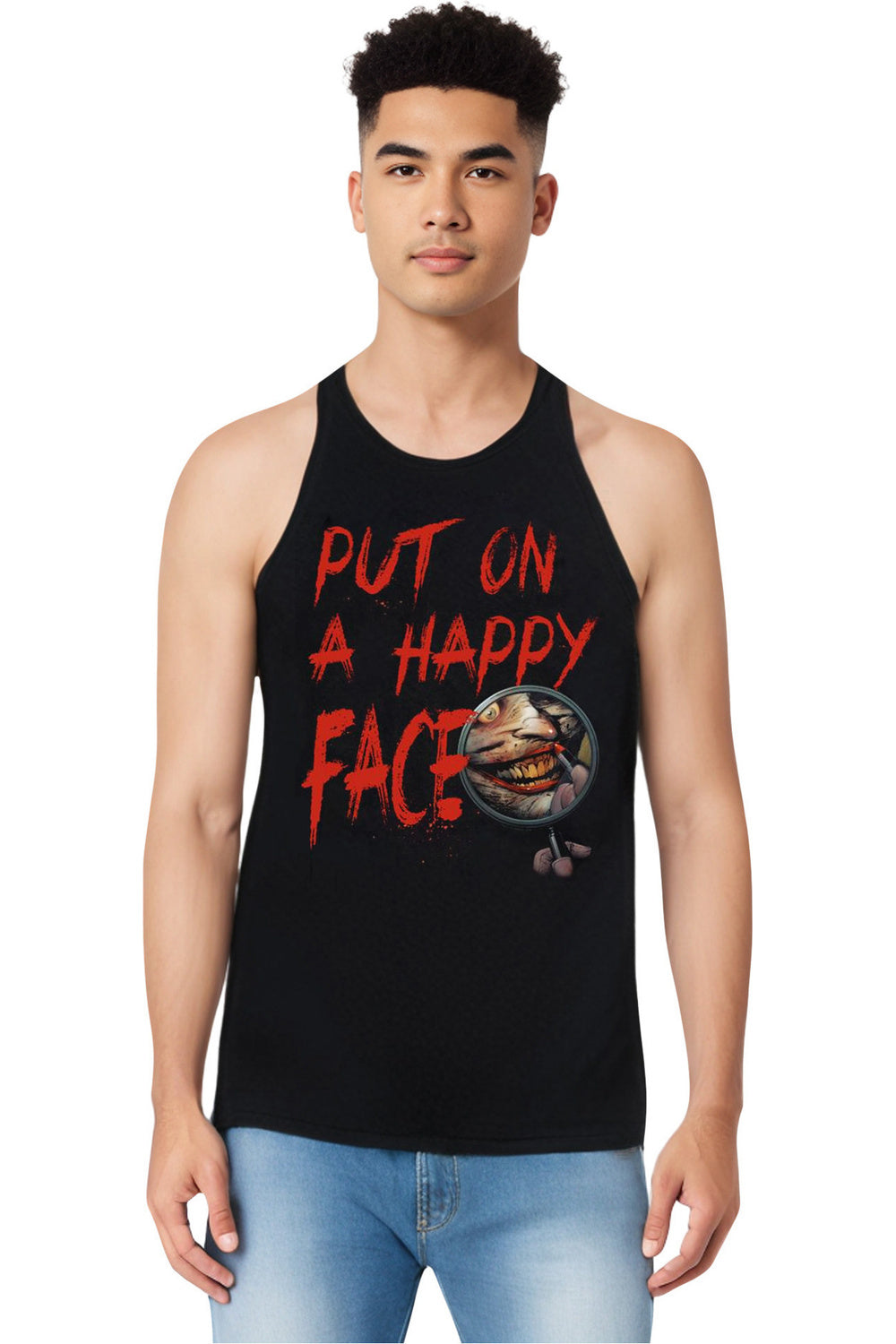 Бэтмен Счастливое Лицо Взрослая Майка Gildan, черный