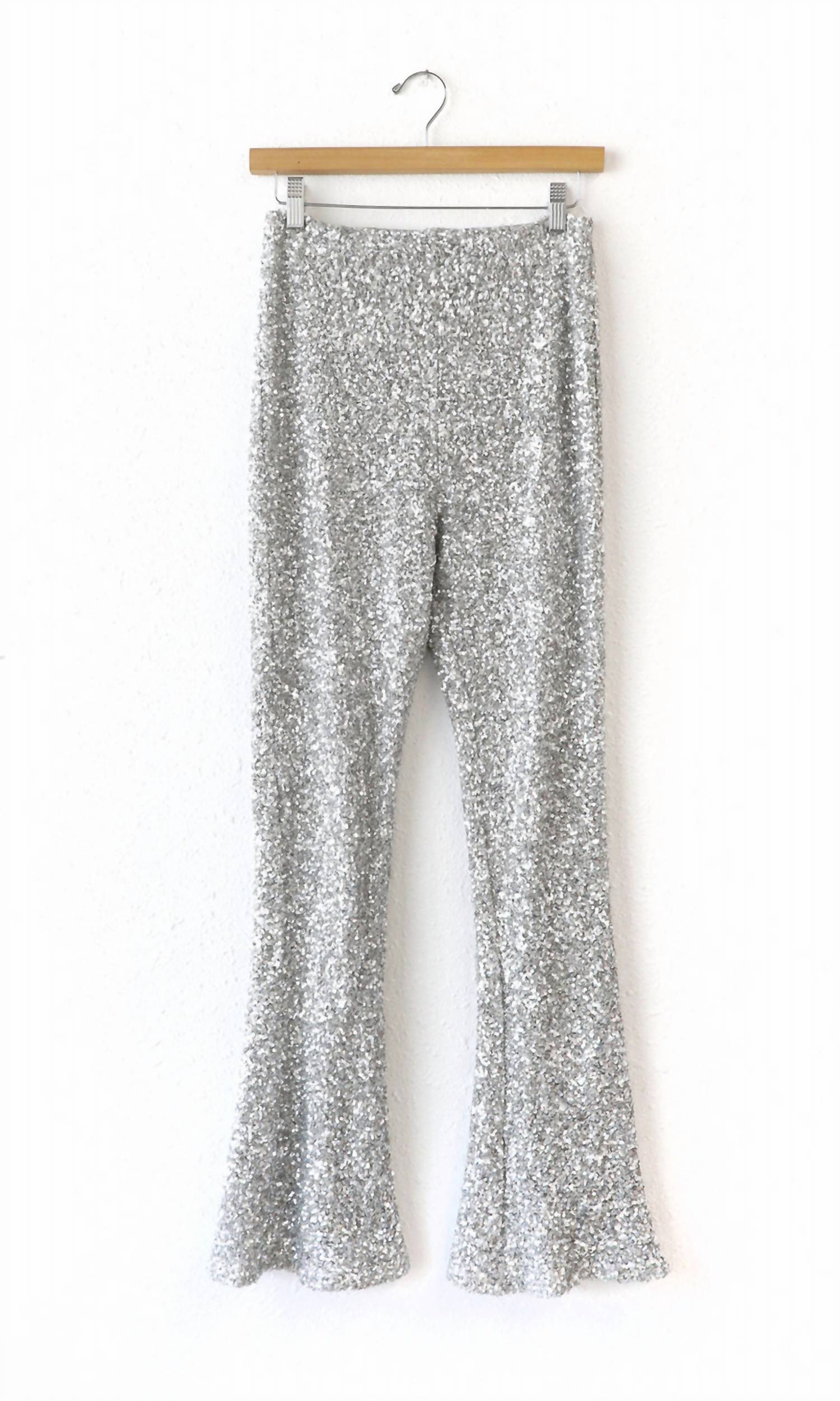 Слегка расклешенные брюки сейчас в моде, и эти не исключение. Сочетайте их с любимой футболкой для более повседневного образа или с любимой блузкой на пуговицах для вечернего выхода. Изготовленные из эластичного материала и завораживающих пайеток, эти брюки придают непринужденный стильный вид. Расклешенный дизайн добавляет форму образу, демонстрируя вашу фигуру с непревзойденным шиком. Брюки с пайетками Расклешенный Высокая талия Внутренний шов - 32" Посадка спереди - 9 7/8" Посадка сзади - 14 3/4" Талия - 13 1/2"