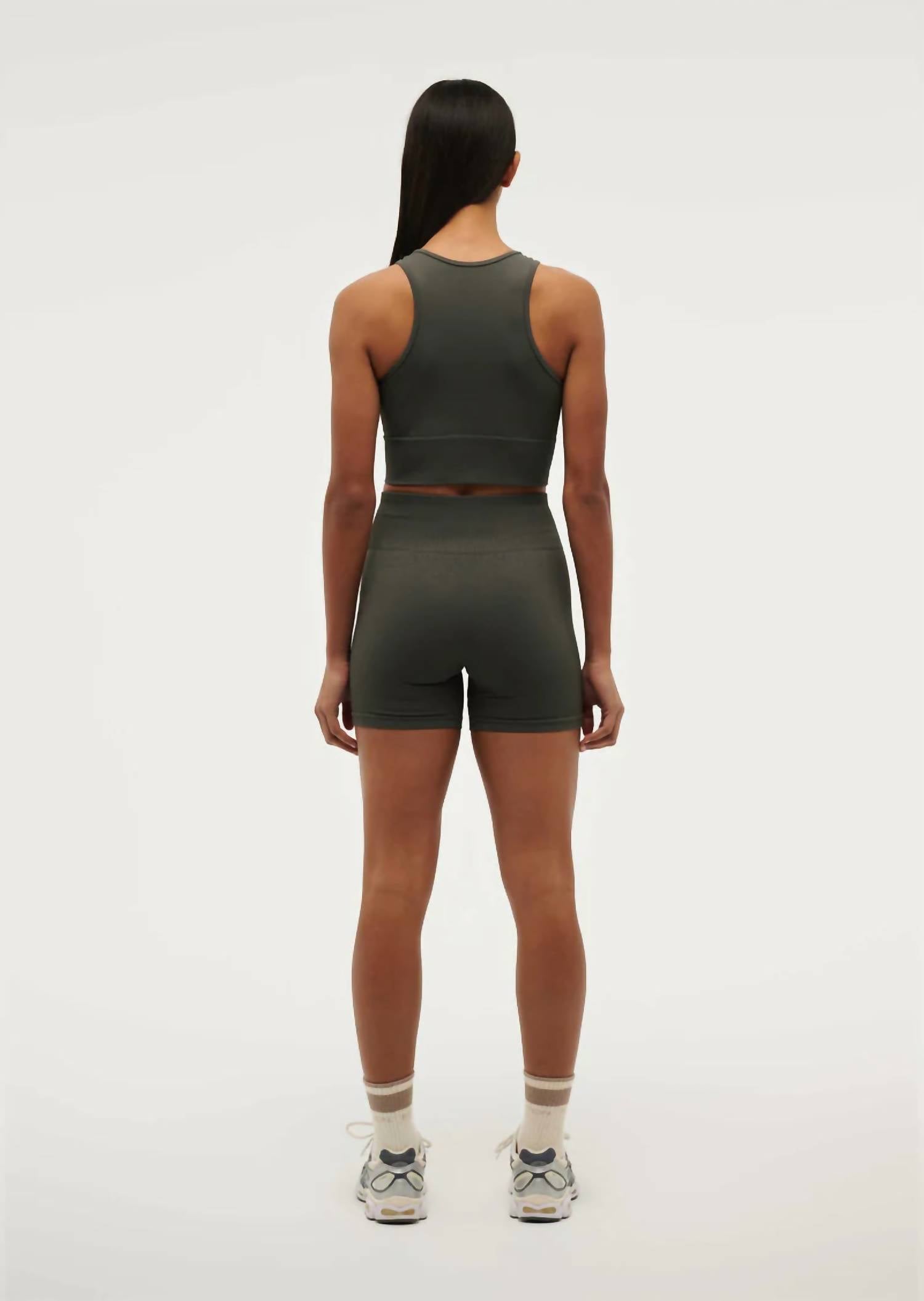 92% нейлон, 8% эластан. Длина внутреннего шва 5 дюймов. Модель надевается. Машинная стирка в холодной воде, сушка в тени. Эти шорты из легкой бесшовной ткани обеспечивают легкую компрессию и идеально сидят по размеру, имеют гибкий ребристый пояс.