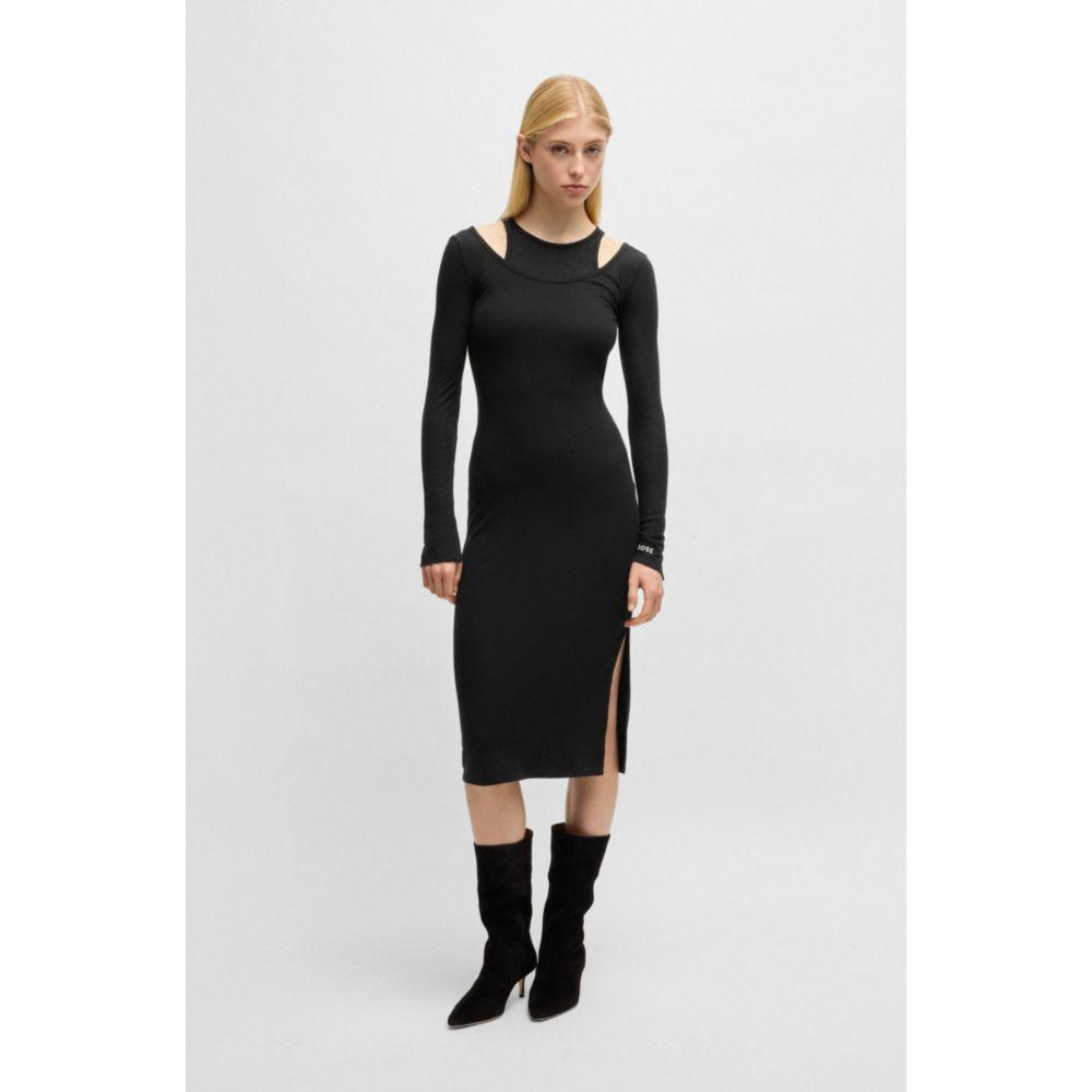 Современное платье от BOSS Womenswear. С креативным вырезом, это изделие состоит из двух слоев, скрепленных вместе. Примите универсальность с этим уникальным дизайном.