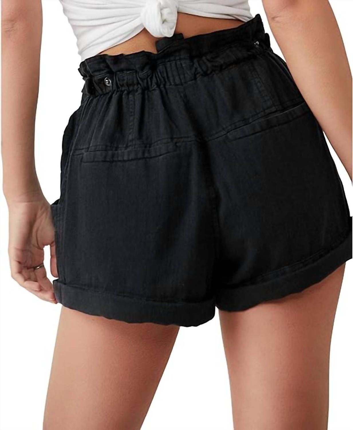 Присборенный эластичный пояс с регулируемыми застежками-кнопками, фиксированные манжеты, накладные карманы на бедрах и прорезные карманы сзади. Посадка — 10,75 дюймов / 27 см. Длина внутреннего шва — 1,5 дюйма / 4 см. Ширина брючины — 26 дюймов / 66 см. Верхний слой — 55% льна, 45% хлопка.