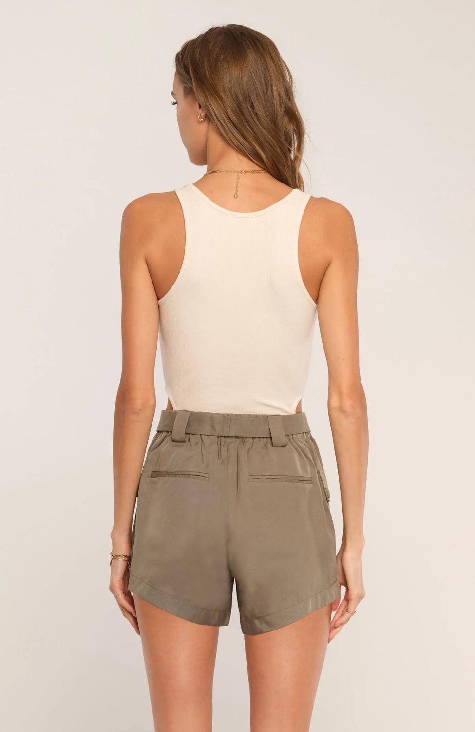 Эти шорты Lyra имеют эластичный пояс и завязки, которые удерживают их на месте. Цвет чинос зеленый. Ткань Tencil Twill. Эластичный пояс. 100% лиоцелл. Длина - 3,5 дюйма. Мерки указаны для размера S