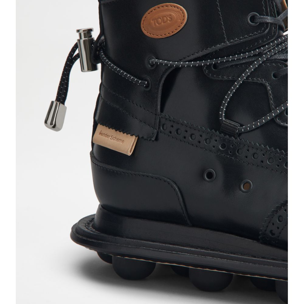 Сочетание классического вдохновения, современного дизайна и мастерства, эти ботинки характеризуются подошвой из кожи и резины, подчеркивающей знаковую особенность резиновых камешков. Разработанная в сотрудничестве с Hender Scheme, эта модель со шнуровкой украшена шнурком с металлическим фиксатором. Гладкий кожаный верх дополнен изысканной перфорацией и крылышком. Отчетливо эклектичная модель с ярким рантом, отсылающим к традиционному японскому стилю.