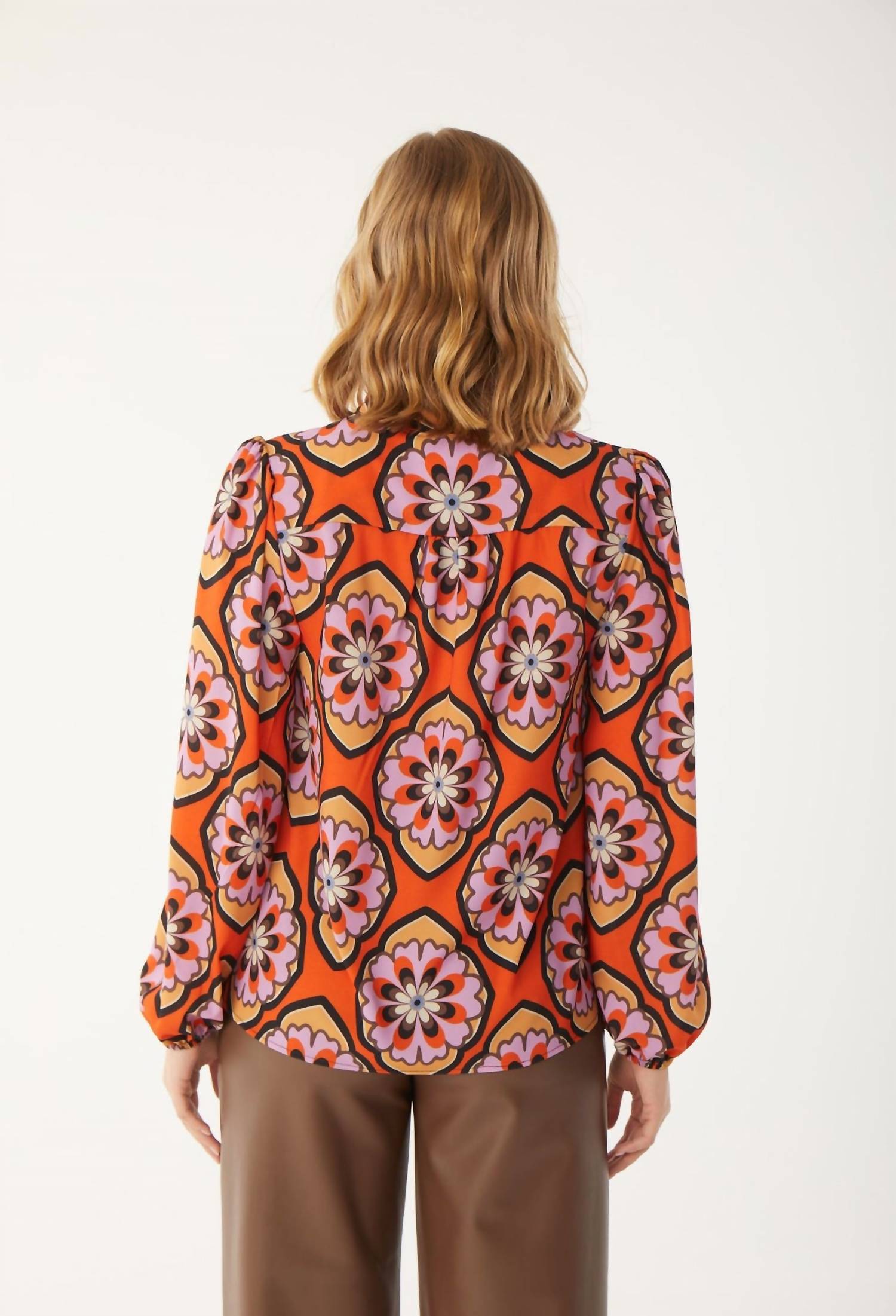Потрясающий цвет цитрусовых. Длинная блузка с шикарным завязывающимся воротничком, который добавляет нотку элегантности. Изготовлена из смеси 95% полиэстера и 5% спандекса. Обеспечивает комфорт и легкую растяжимость.