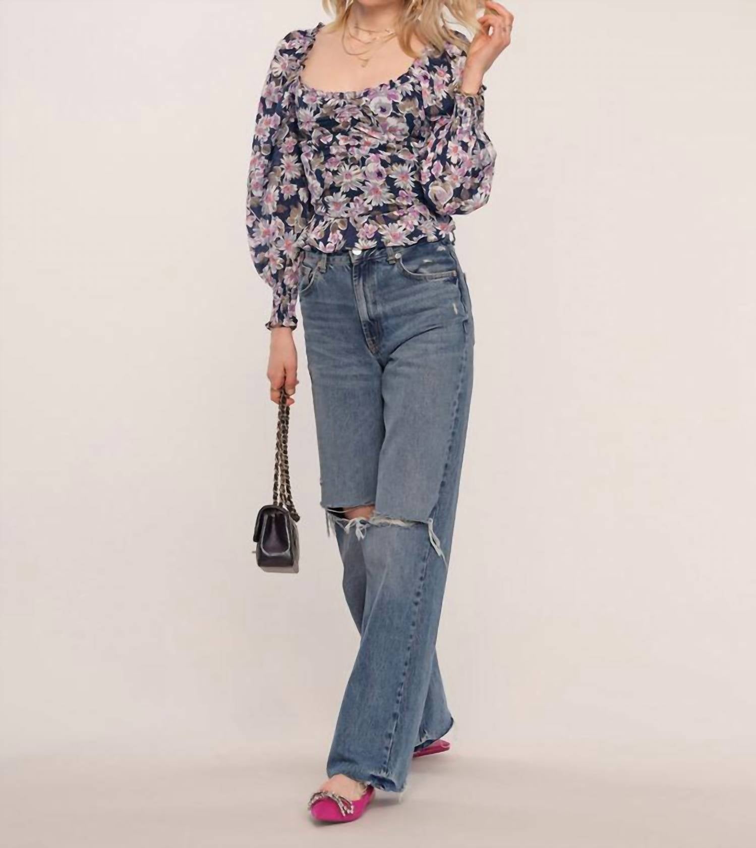 Этот топ Ariana непринужденно женственный. Он имеет мягкий лиф с рюшами и вырез в форме сердца. Рукава-блузон и романтический цветочный принт идеально подходят для свидания.