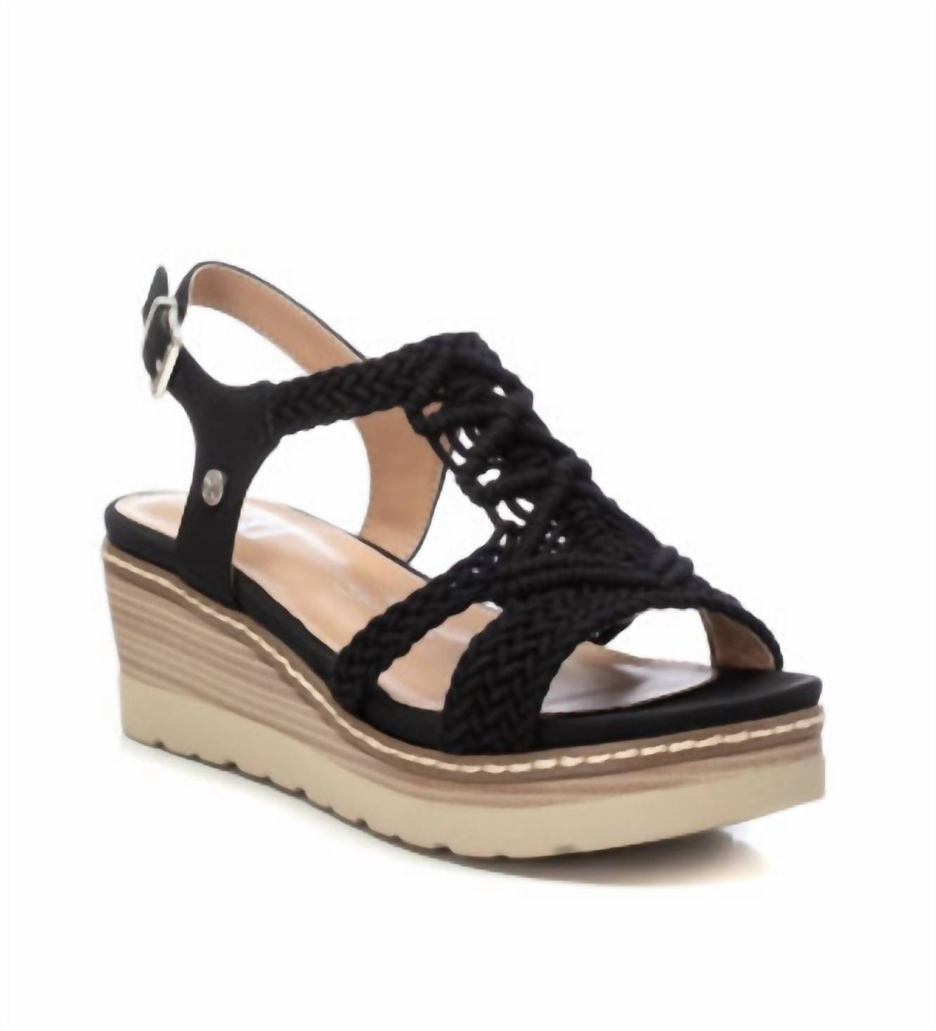 Эти босоножки на танкетке имеют замысловатый дизайн узлов макраме с металлической пряжкой для надежной посадки. Каблук-танкетка высотой 6 см (2,36 дюйма) обеспечивает легкий подъем без ущерба для устойчивости. Включает нескользящую резиновую подошву и сертифицирована PETA как веганский продукт, идеально подходит для экологически сознательной летней одежды.