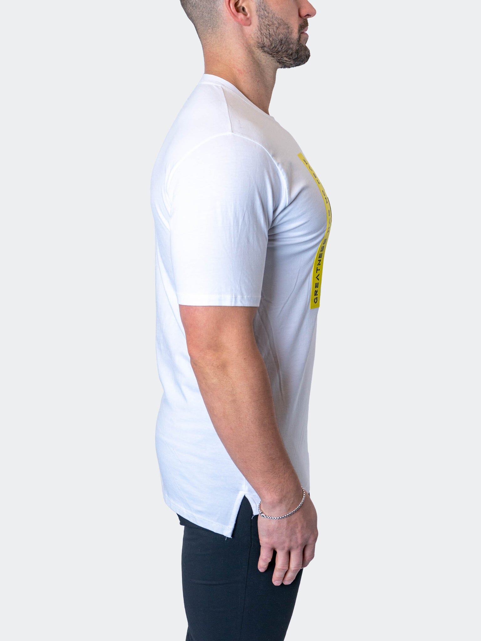 Фирменная футболка Maceoo является неотъемлемой частью современного гардероба, она сделана из роскошного хлопка с привлекающими внимание деталями. Футболка немного удлинена, так что при ношении поверх толстовке часть футболки будет выглядывать, добавляя современный штрих к любому наряду.