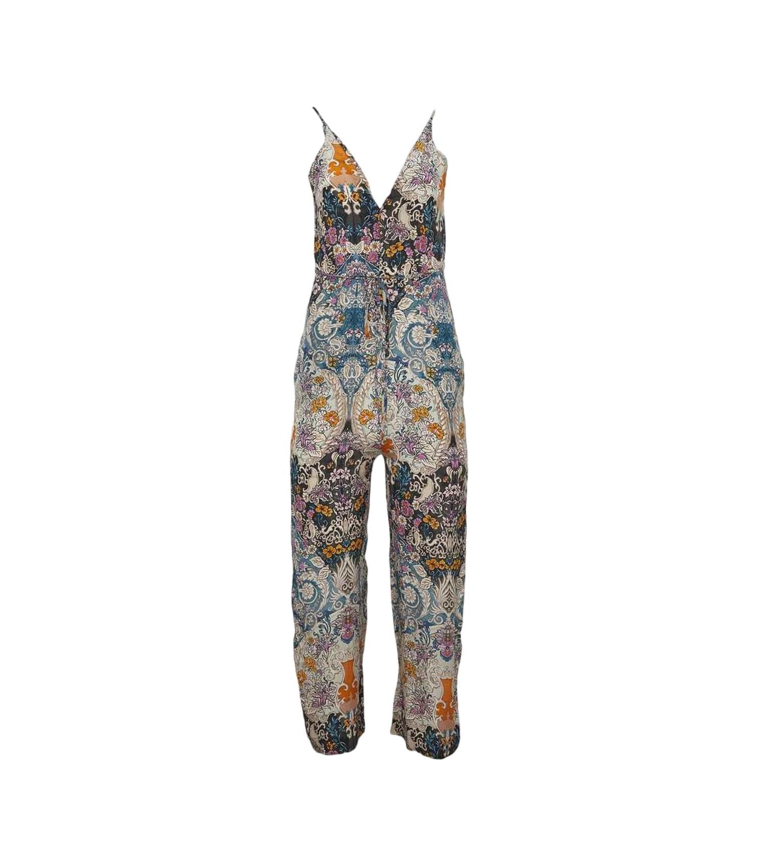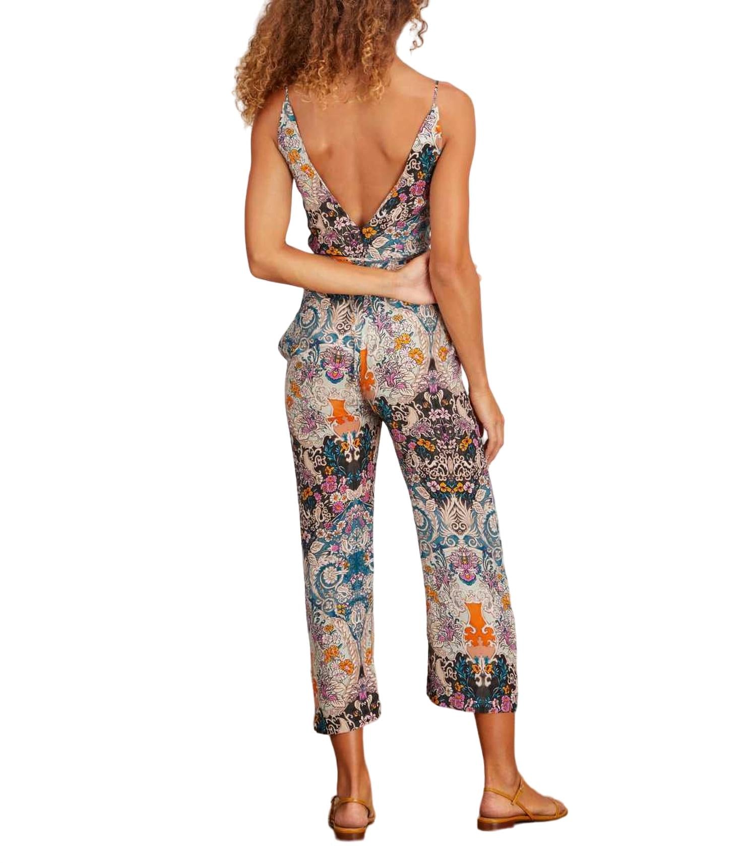 Комбинезон Maria Cher Besalu Agnes в цвете Mix имеет глубокий V-образный вырез, бретельки-спагетти и пояс на талии. Состав - 100% шелк. Посадка - соответствует размеру.