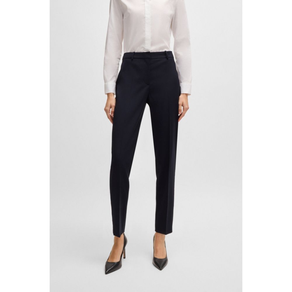 Укороченные брюки зауженного кроя прямого кроя с завышенной талией из однотонного материала от BOSS Womenswear.
