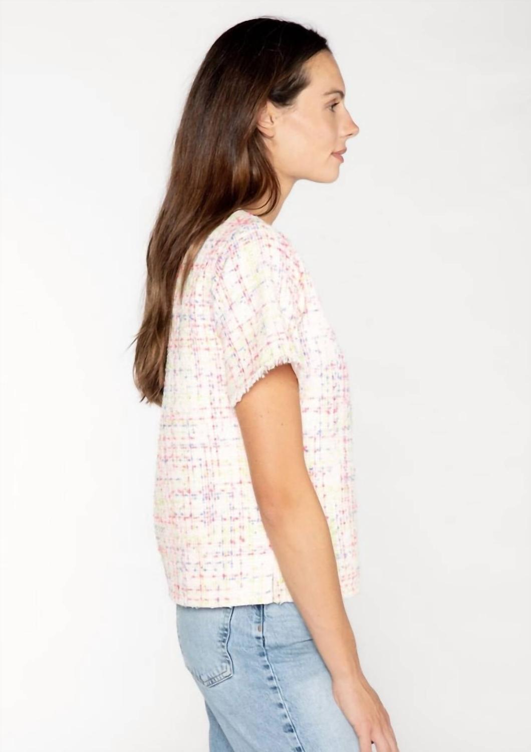 Откройте для себя универсальное очарование этой туники-блузки, разработанной как для многослойного ношения, так и в качестве самостоятельного предмета одежды. Ее облегающий силуэт и стильные детали делают ее незаменимой в гардеробе. Ткань - 100% поли (Foxy Tweed) Машинная стирка в холодной воде, сушка в горизонтальном положении На модели размер SFIT - соответствует размеру.