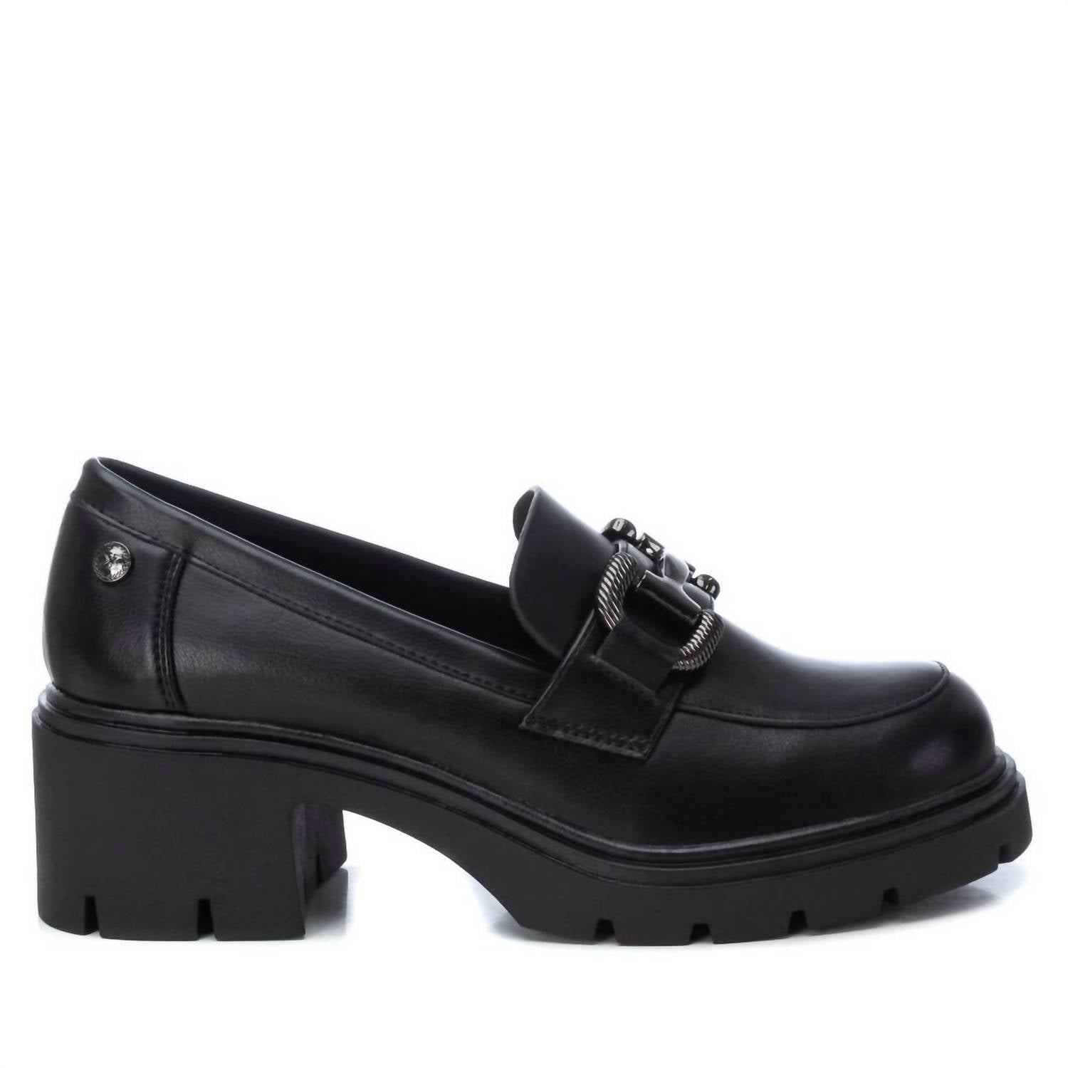 Изготовлены из материала, имитирующего кожу. С декоративной деталью спереди. Каблук шириной 6 см, нескользящая рифленая подошва.