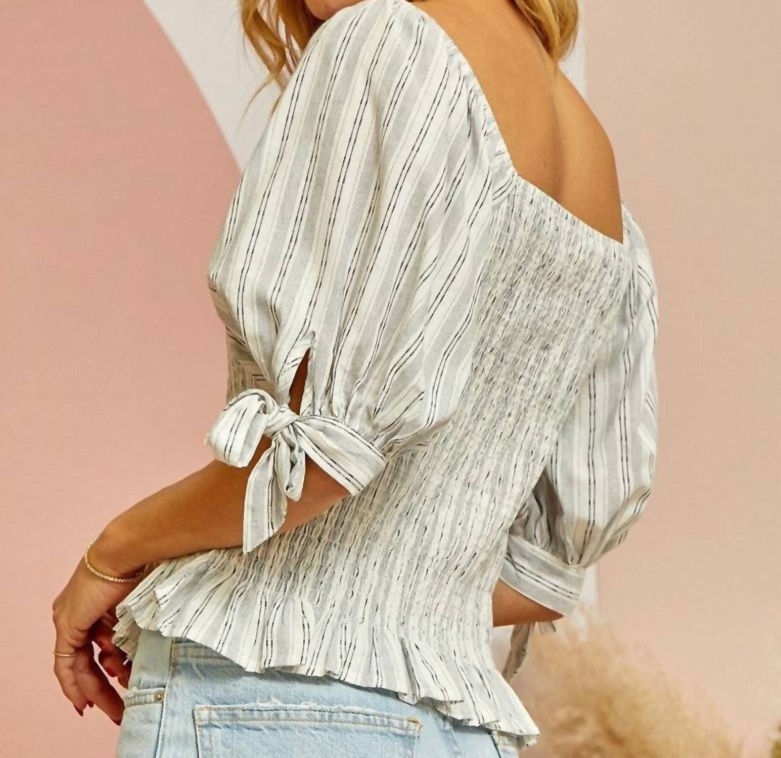 Полосатый хлопковый топ. Квадратный вырез, присборенный лиф. Рукава-фонарики. 100% хлопок.