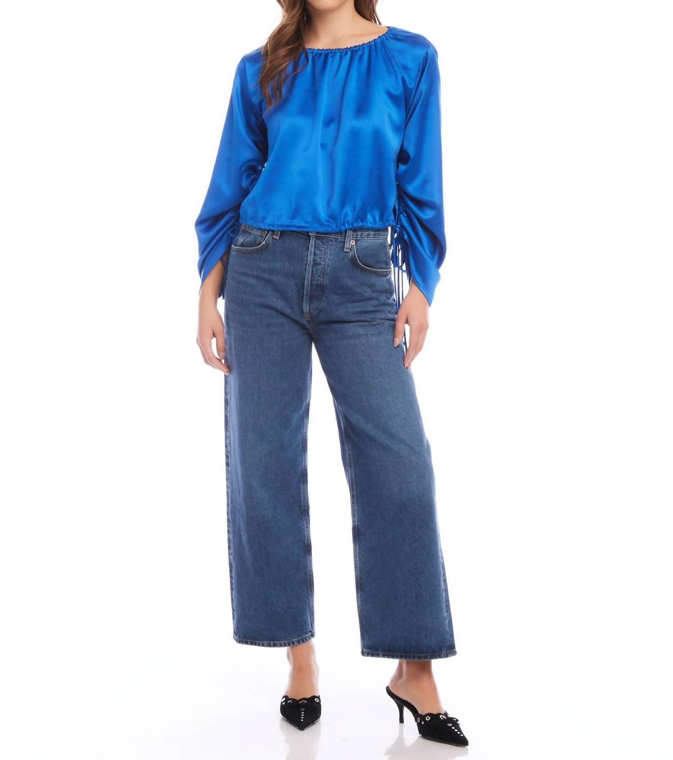 Рукава на завязках. Вырез лодочкой. Длинный рукав. Длина - 18 3/4". Только сухая чистка. 100% полиэстер. Сделано в США.