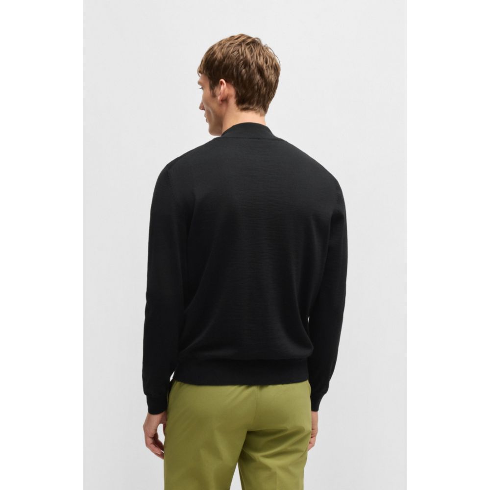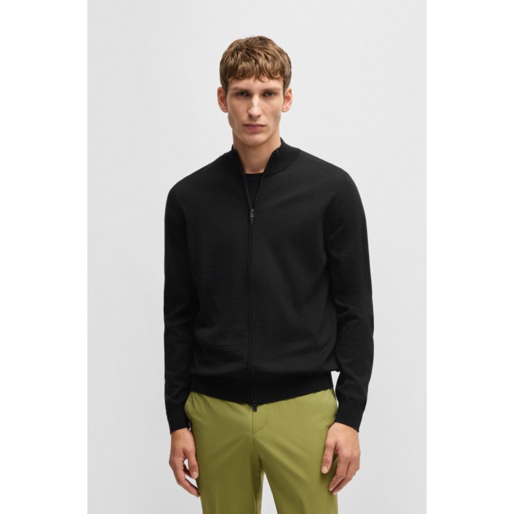 Универсальный кардиган с двухсторонней молнией от BOSS. Изделие имеет стандартный крой с фирменной полосой внутри воротника. Изделие изготовлено из шерсти.