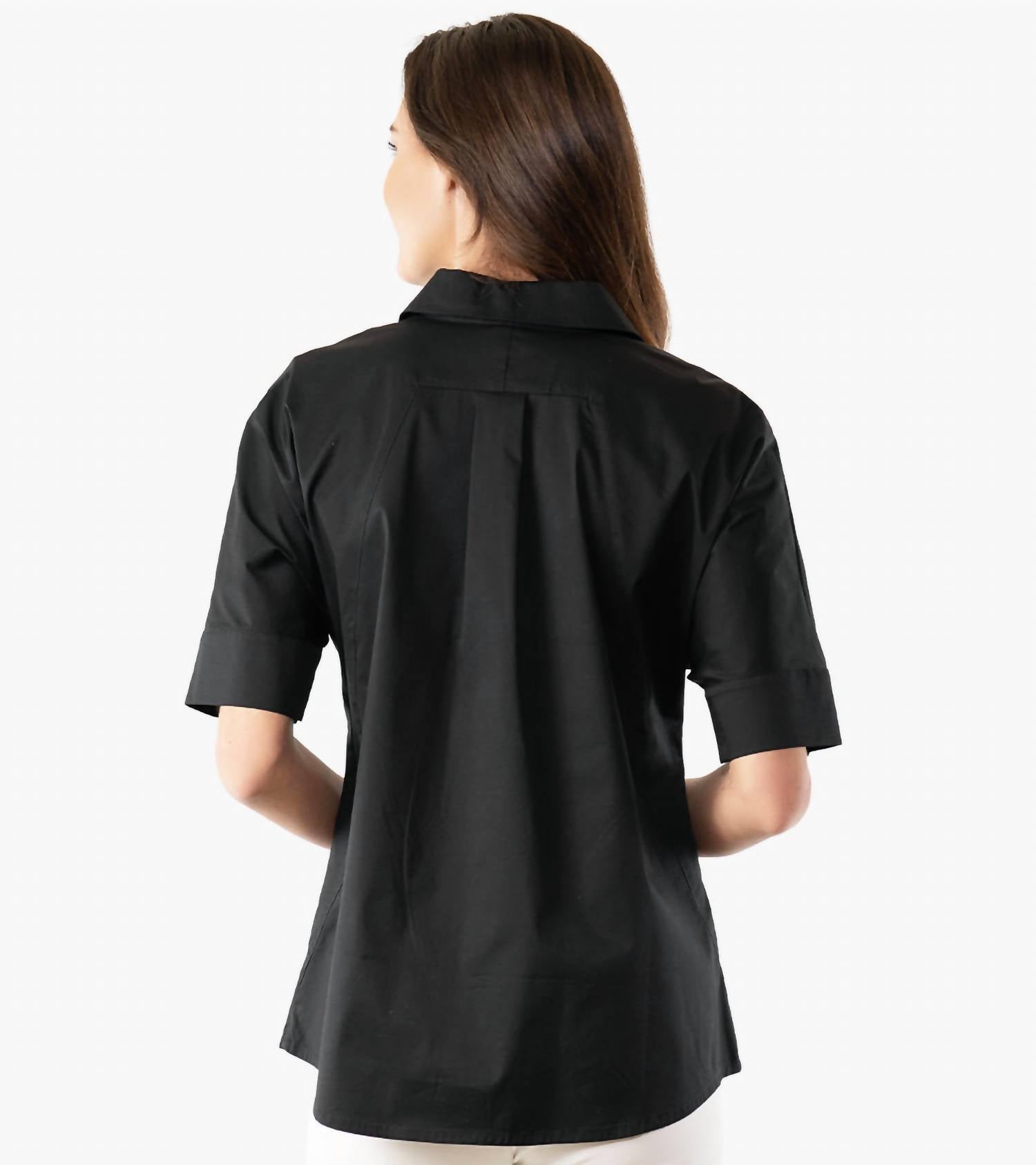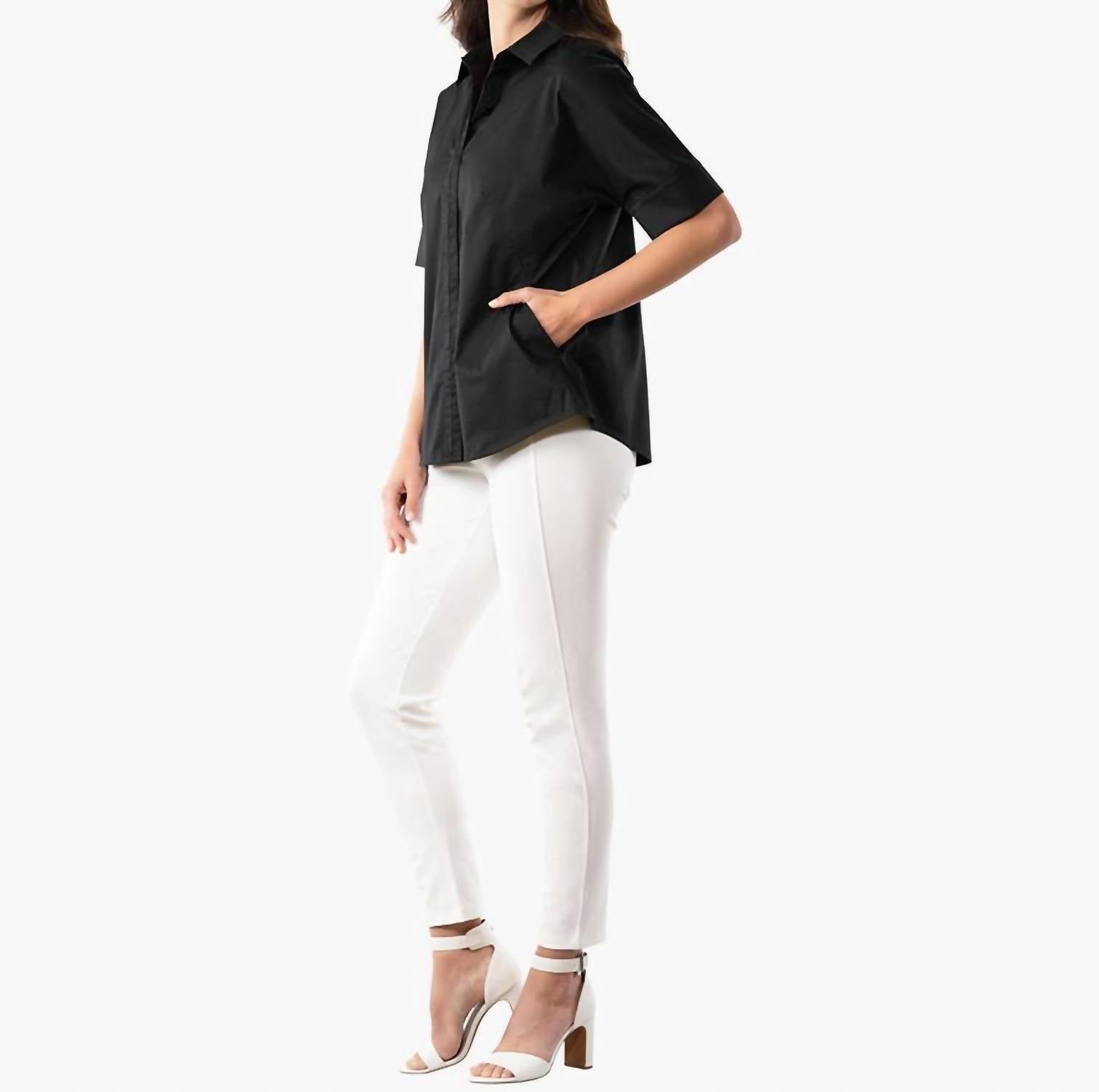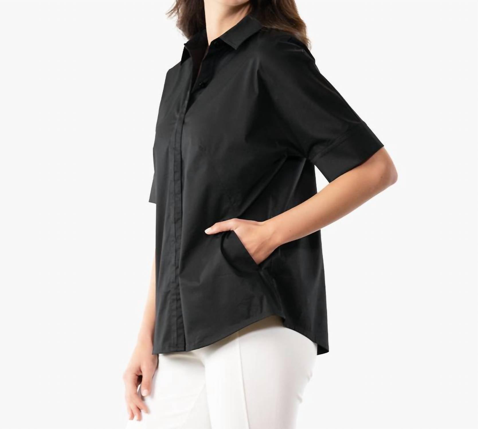 Рубашка из органического хлопкового поплина. Застежка на пуговицы, передние карманы и легко облегающие рукава с широкими манжетами. Длина по спинке составляет около 27 дюймов для размера S. Модель выше ростом 5 футов 11 дюймов носит размер S.