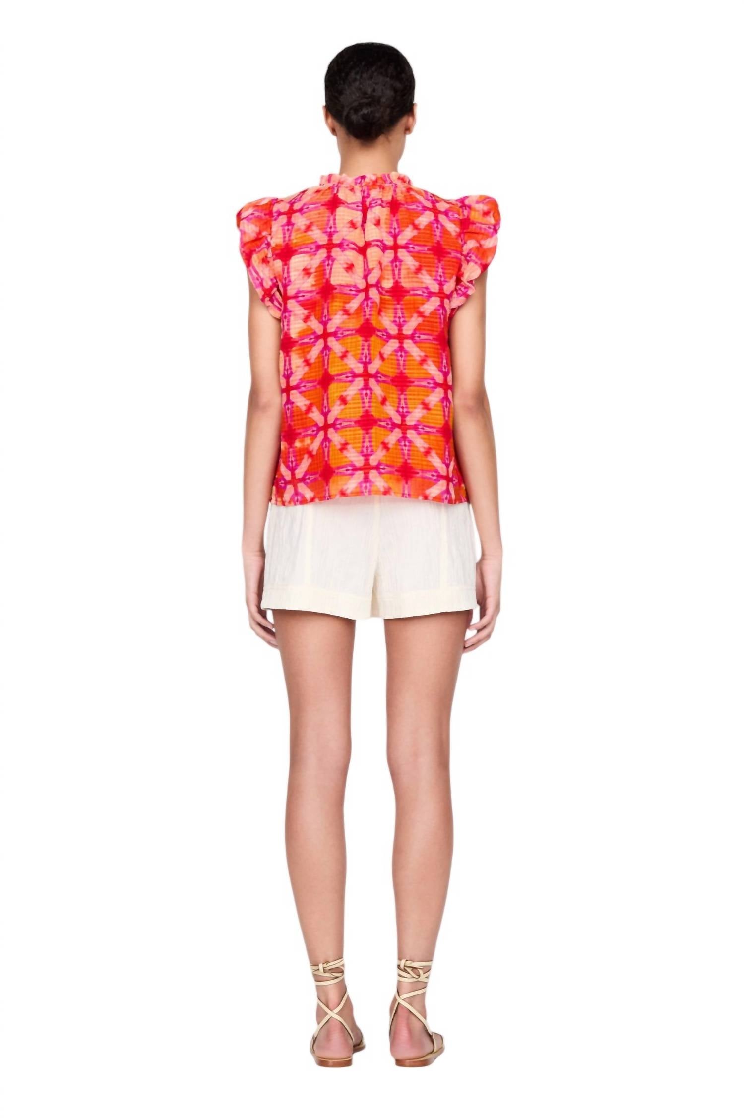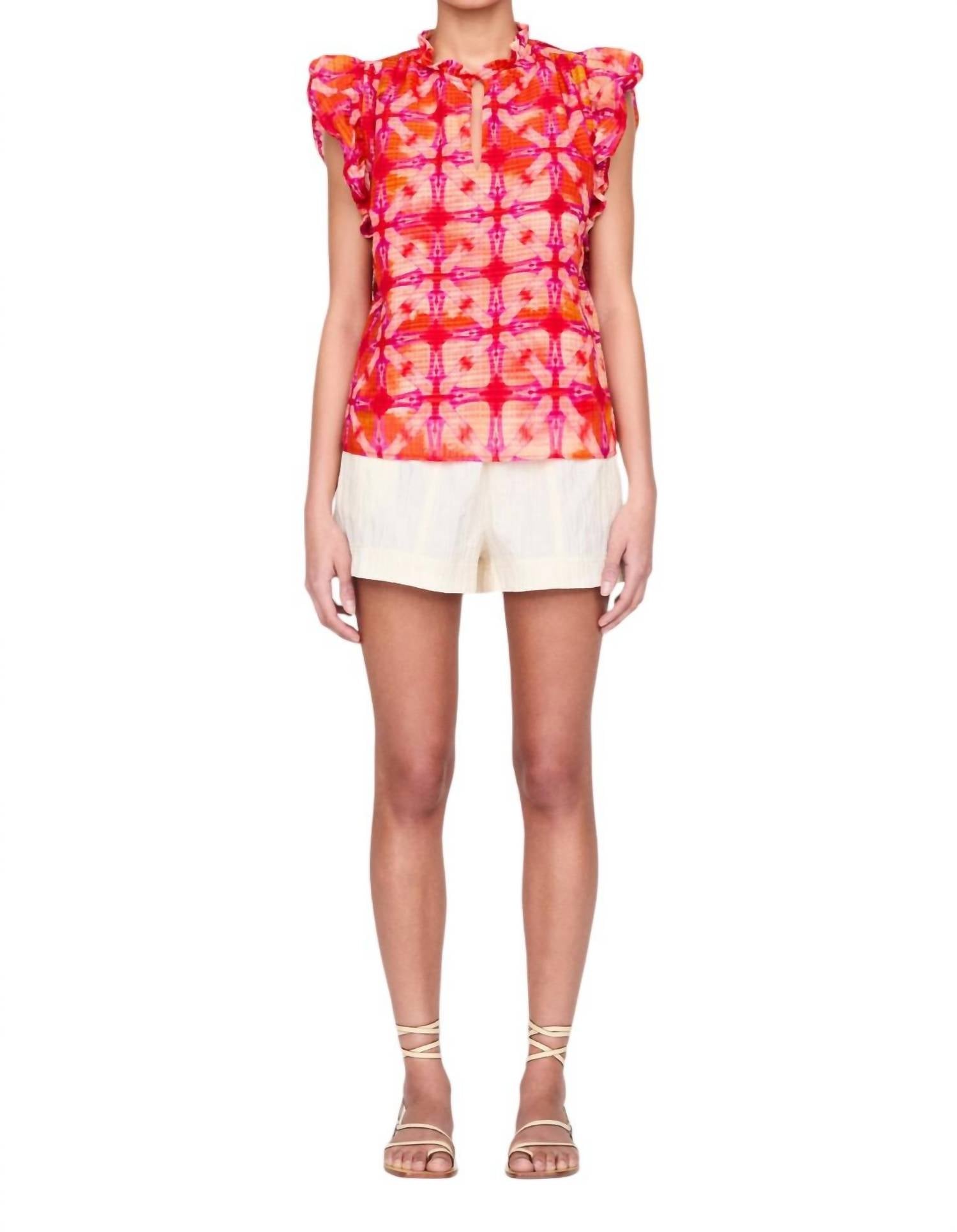 Стильные рукава с оборками и элегантный дизайн, идеальный для лета. Это блузка в стиле пуловера, которая сочетает в себе комфорт и моду, идеально подходит для теплых дней и неформальных встреч. 100% хлопок. Соответствует размеру. Химчистка.