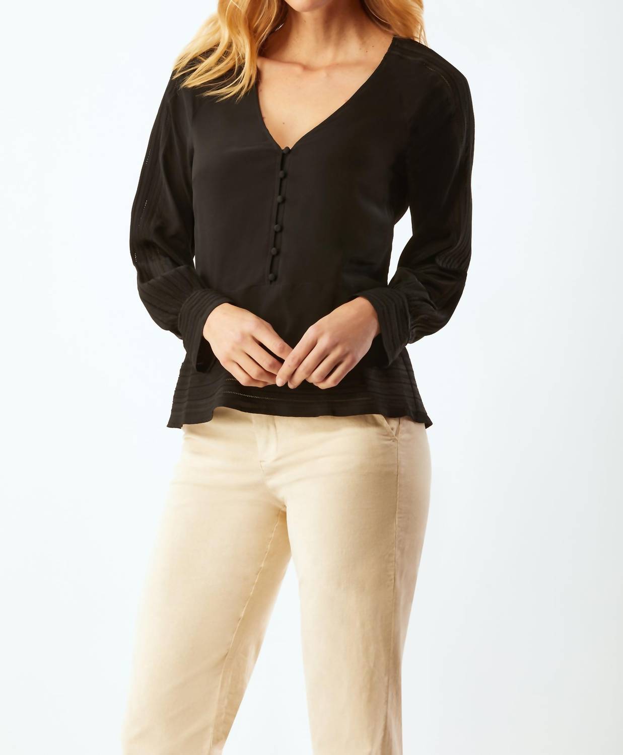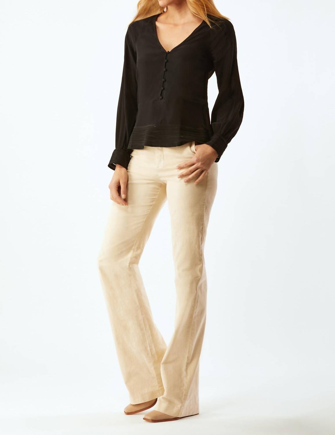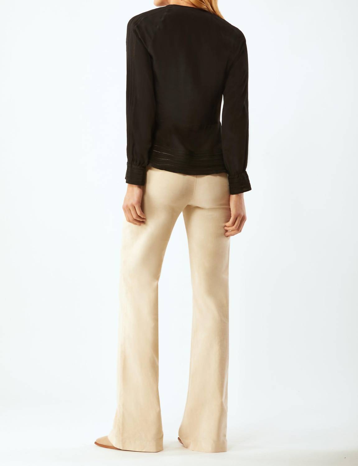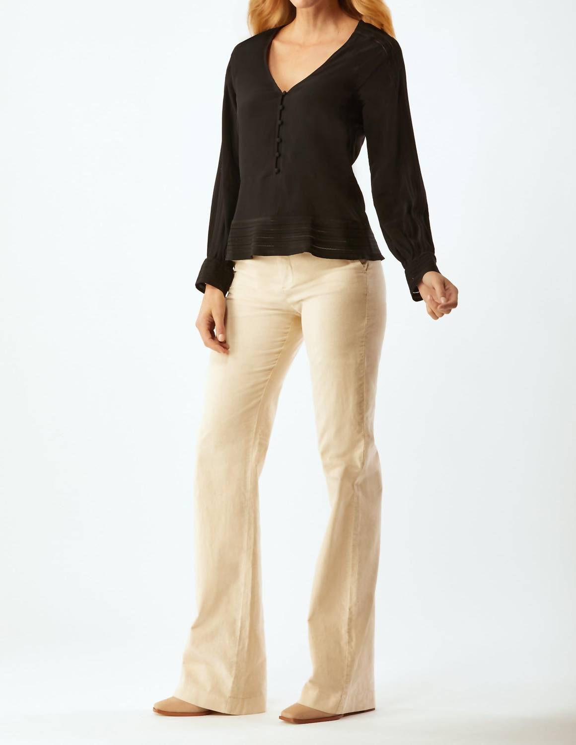 Откройте для себя предел утонченной элегантности с блузкой Hathaway цвета экрю с вышивкой. Изготовленная из роскошной шелковой ткани sandwashed, эта модель идеально подходит для вечернего выхода благодаря своей привлекательной вышивке, баске и застежке на пуговицы. Черный цвет станет идеальным дополнением к любому осеннему гардеробу. Освежающая, стильная и шикарная — вам обязательно понравится!