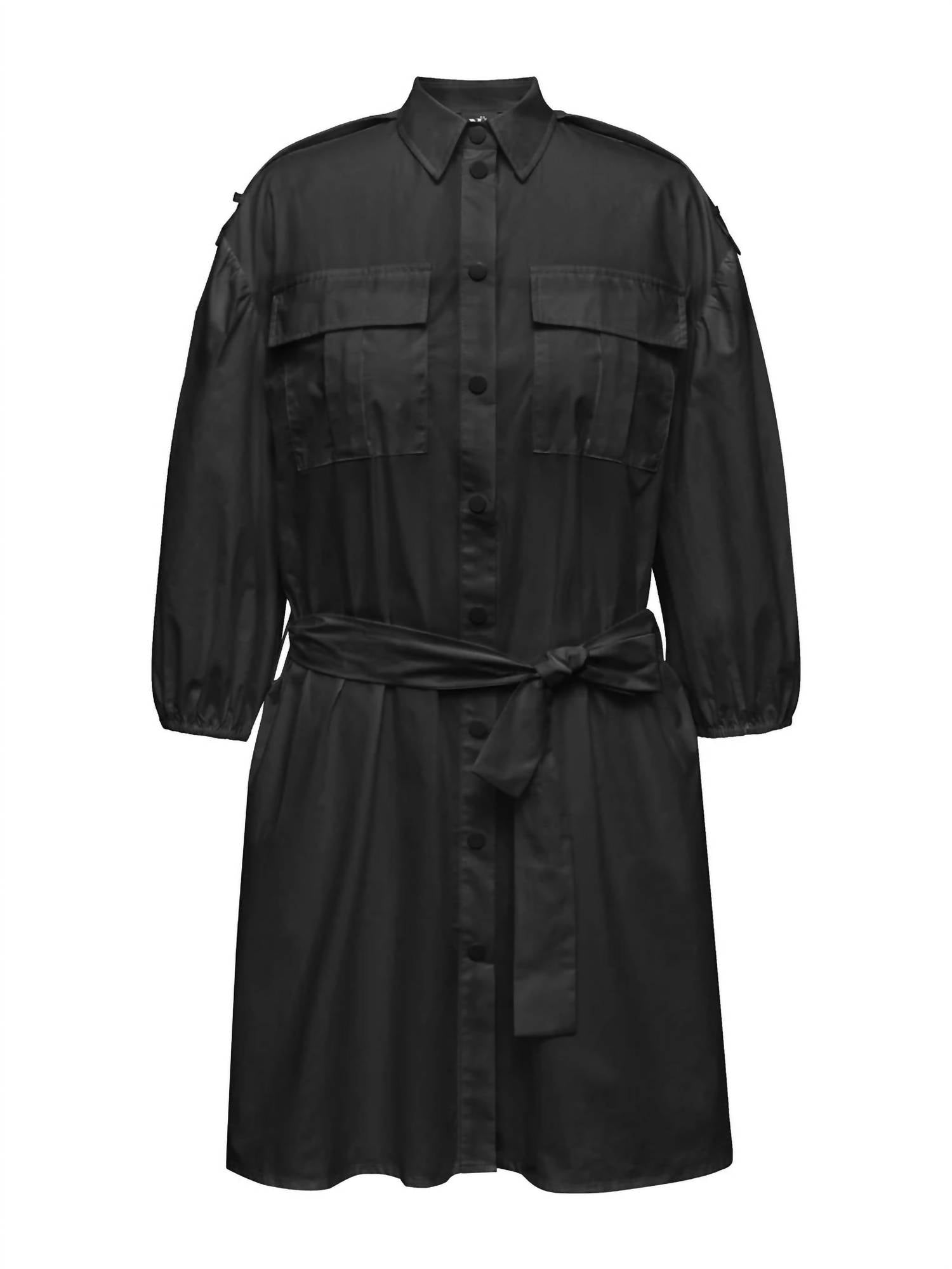 Универсальное платье-рубашка с длинными рукавами и воротником-стойкой. Изготовлено из 100% хлопка для дышащего комфорта. Имеет практичную застежку на пуговицы спереди и пояс, подчеркивающий талию. Обеспечивает элегантную изысканность. Элегантный черный сплошной цвет дополняет вышитые детали и карманы.