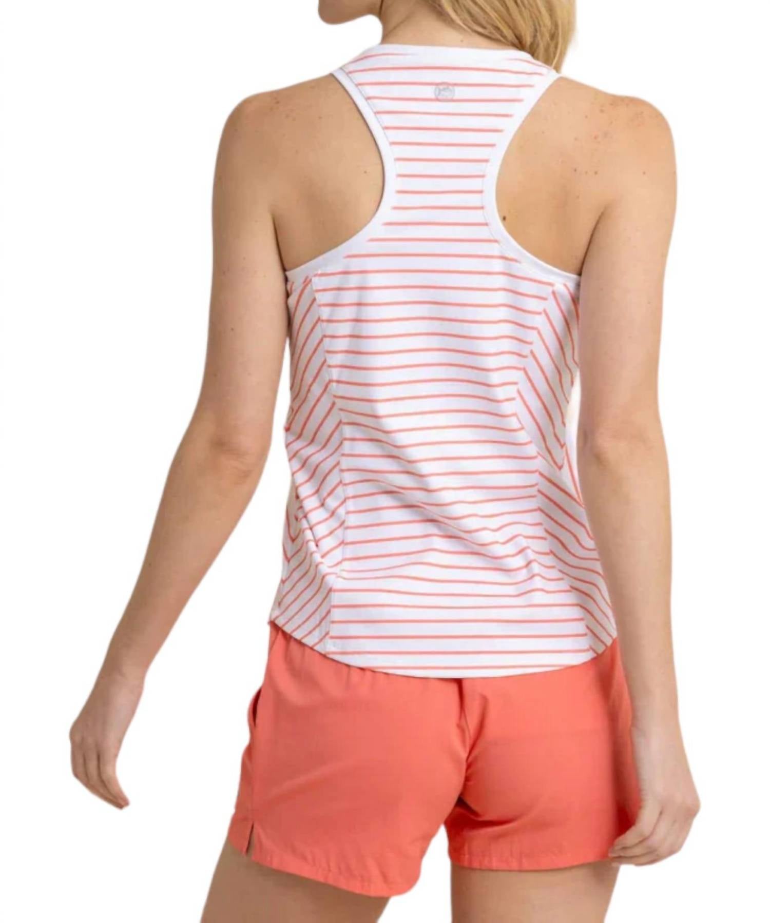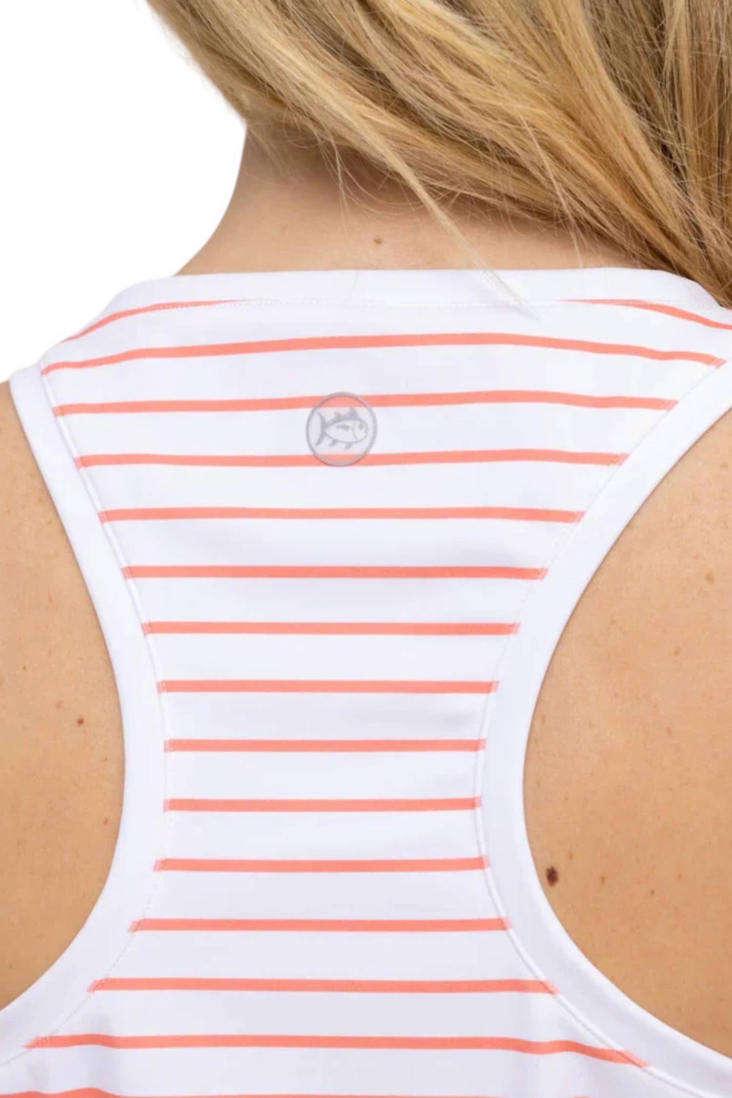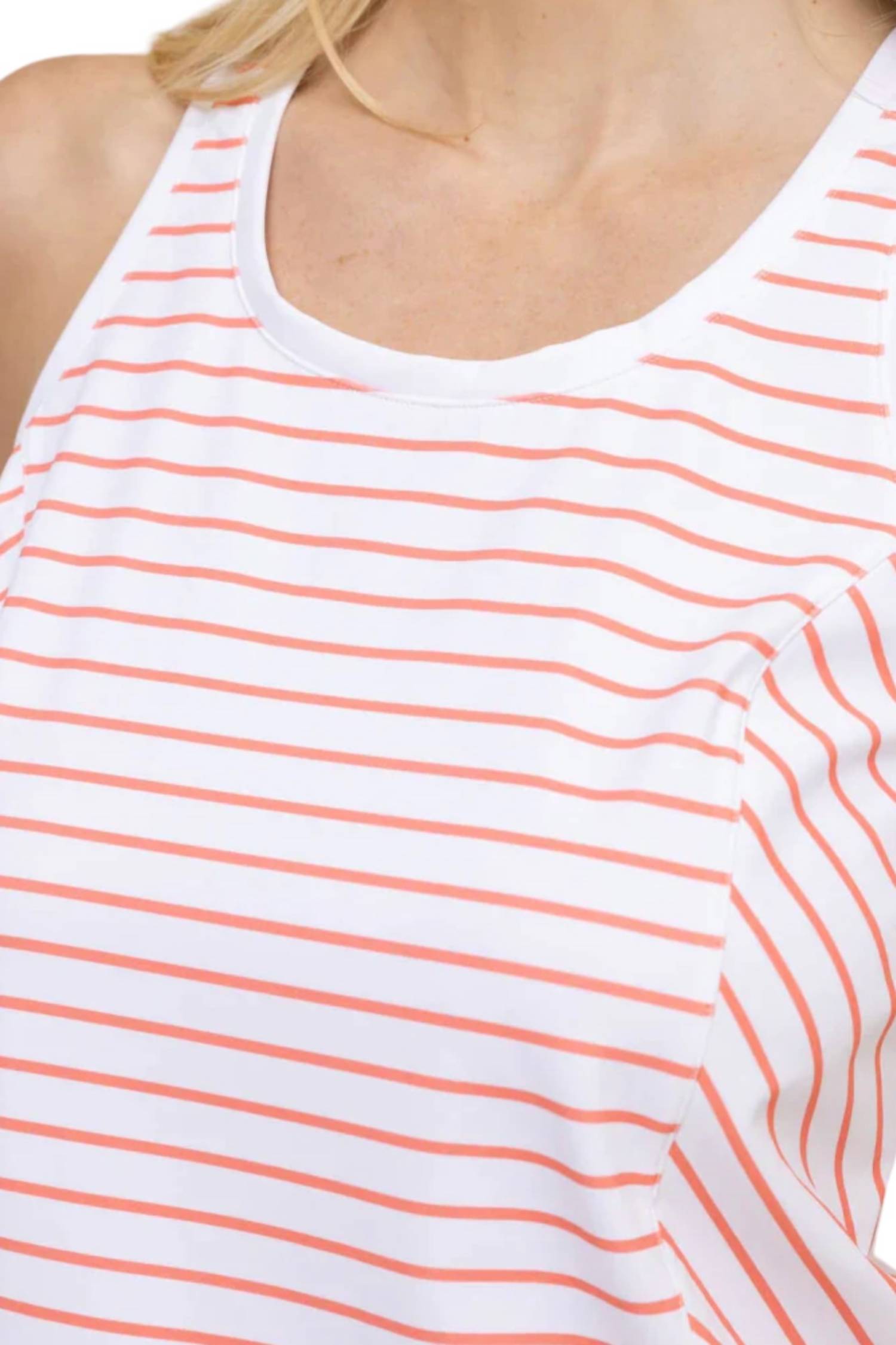 Выполнена на классическом белом фоне. Украшена игривыми полосками из ракушек. Безрукавка. Спортивный дизайн со спиной-борцовкой. Разработана для комфорта. Смесь 75% нейлона и 25% спандекса. Технология влагоотводящей и охлаждающей ткани. Защита от ультрафиолета. Овальный вырез. Приятный на ощупь.