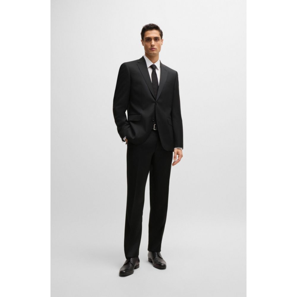 Однобортный пиджак из натуральной шерстяной саржи BOSS, черный 67 343₽