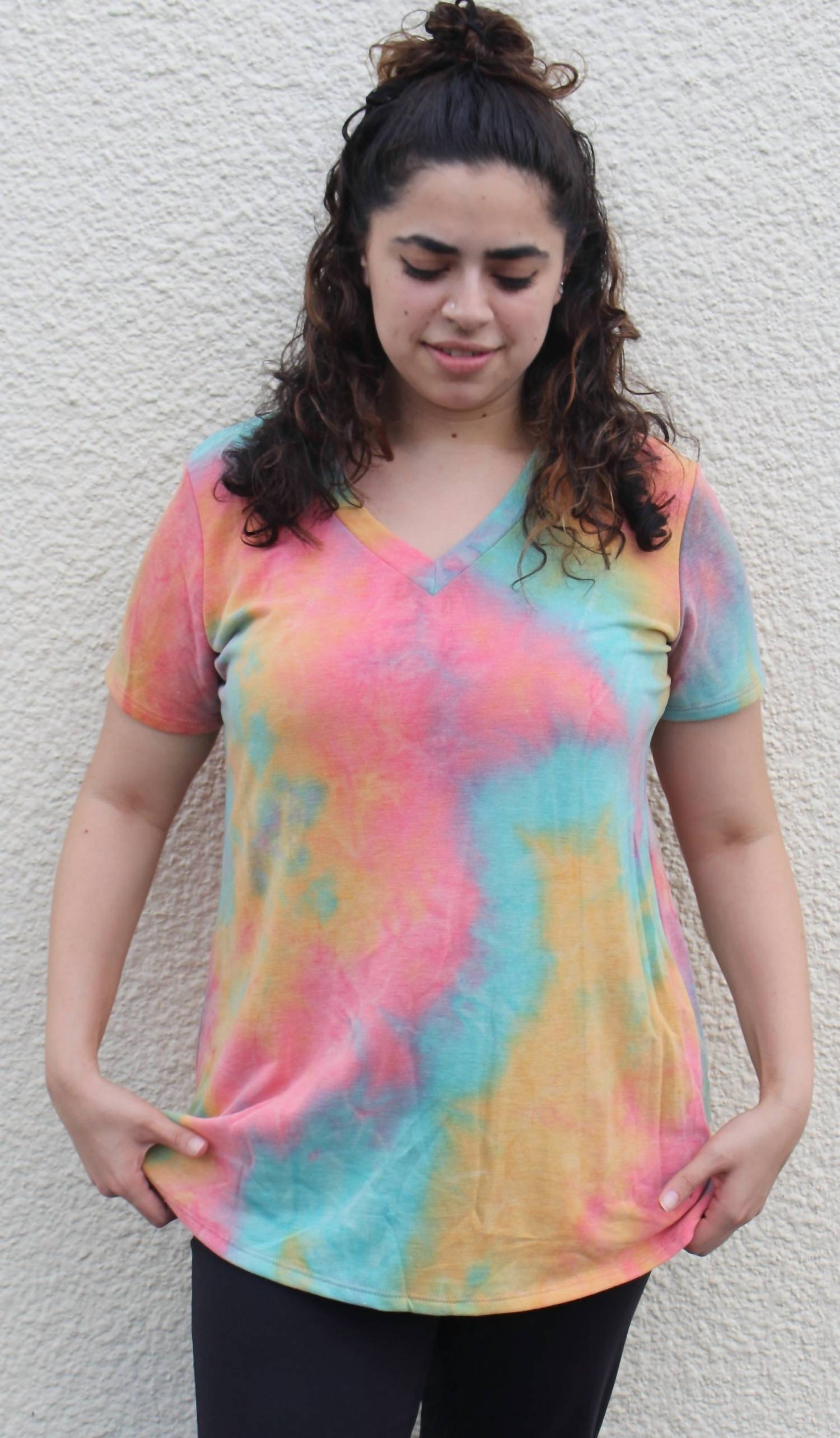 Этот топ имеет V-образный вырез, короткие рукава и прямой подол. Он легкий и изготовлен из очень мягкой, эластичной ткани French terry. Маленькая грудь 36" Длина 29", Средняя грудь 38" Длина 29", Большая грудь 40" Длина 29", 1XL Бюст 42" Длина 30", 2XL Бюст 44" Длина 30", 3XL Бюст 46" Длина 30". 95% полиэстер 5% спандекс. Расположение рисунка может отличаться. Ручная стирка, импортируется.