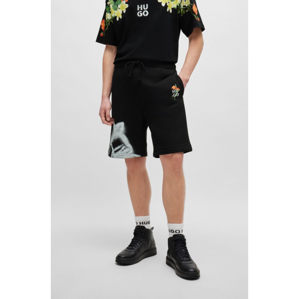 Характерные шорты от HUGO, свободного покроя. Эта пара сшита из махровой ткани, украшена фирменным принтом и цветочным рисунком.