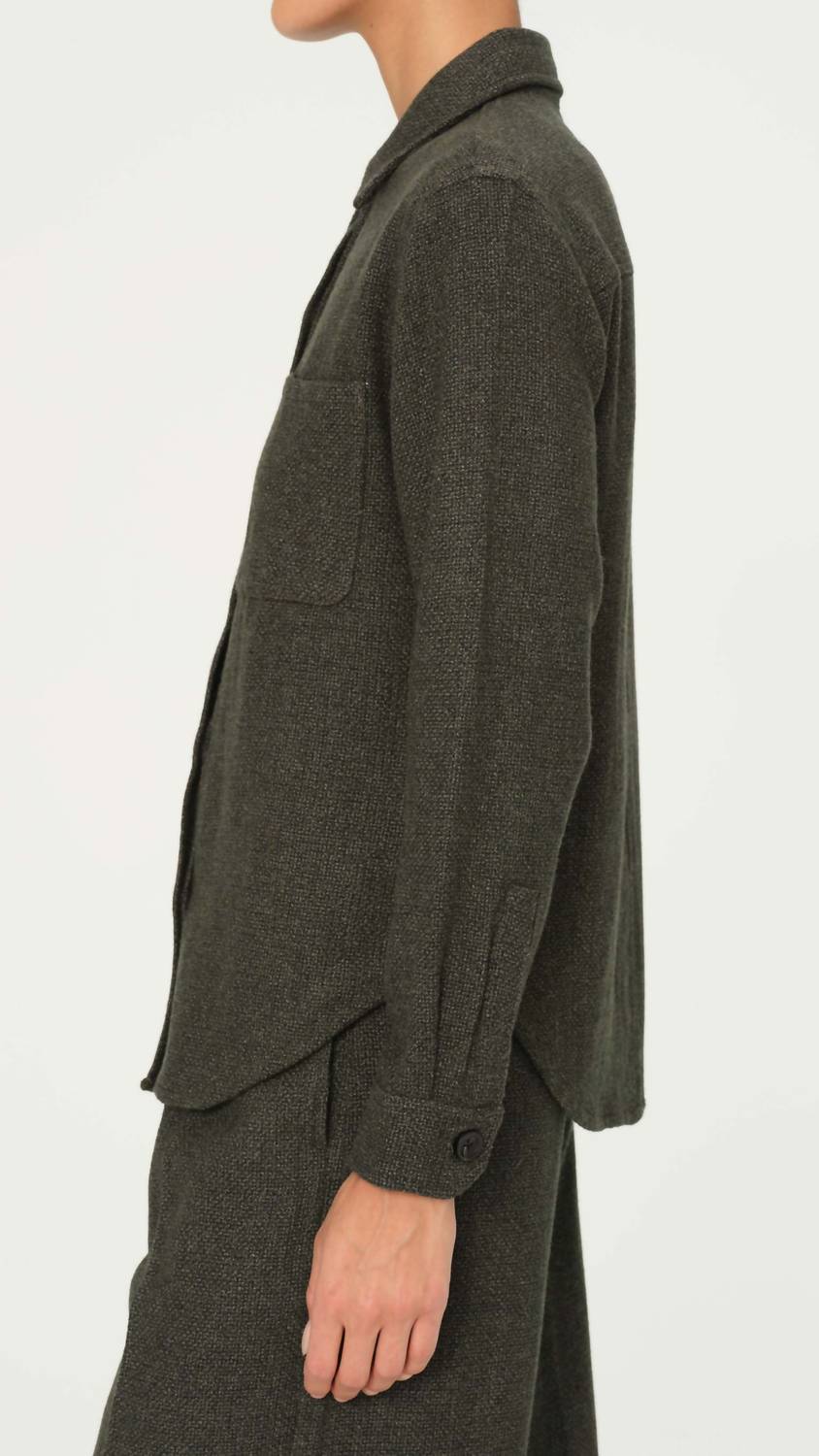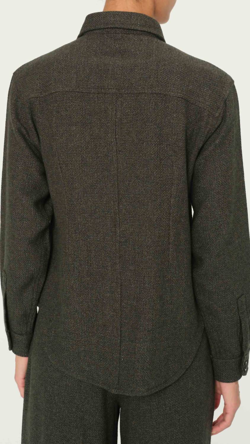 Эта джинсовая рубашка изготовлена из смеси 69% шерсти, 29% шелка, 2% кашемира, имеет длинные рукава, воротник-стойку и застежку на пуговицы. Ее длина 25 дюймов обеспечивает изысканный, текстурированный вид. Только сухая чистка.