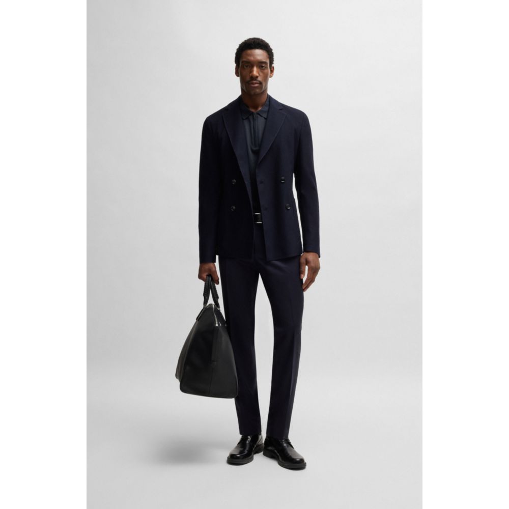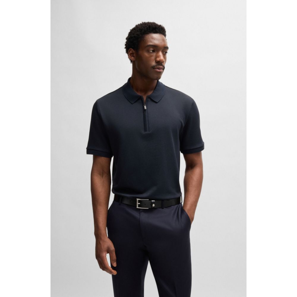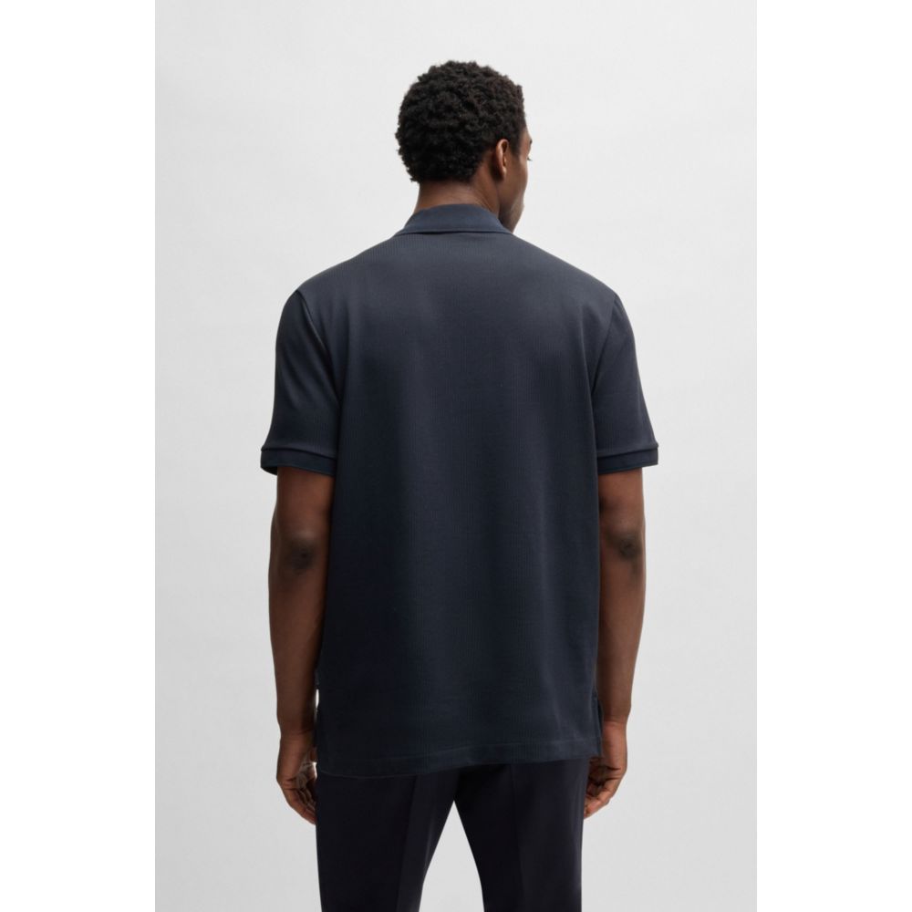 Рубашка поло с фактурой сирсакера BOSS, темно-синий