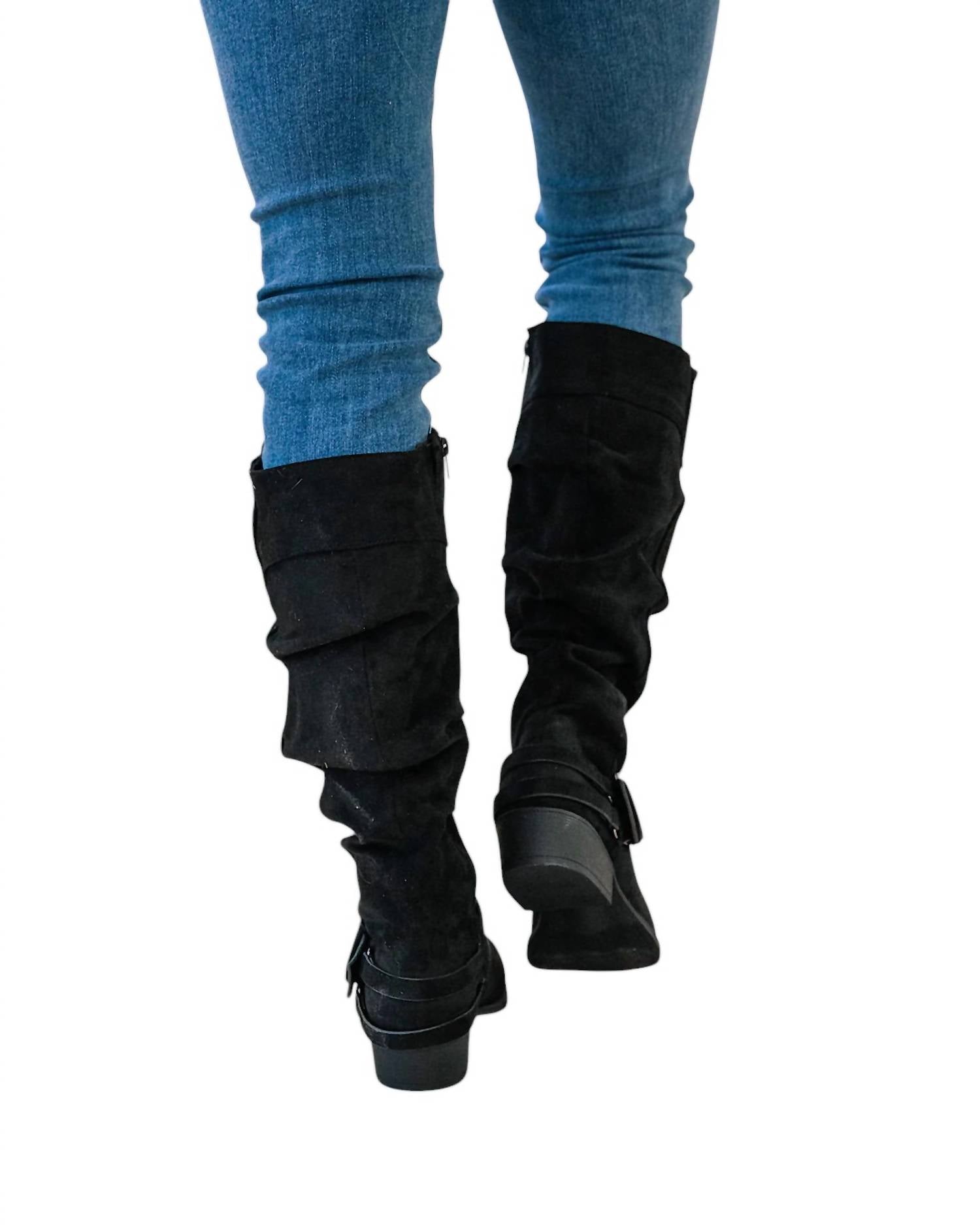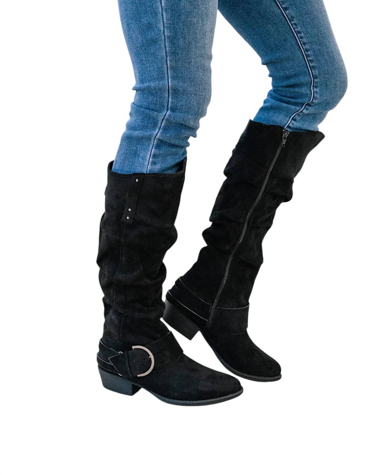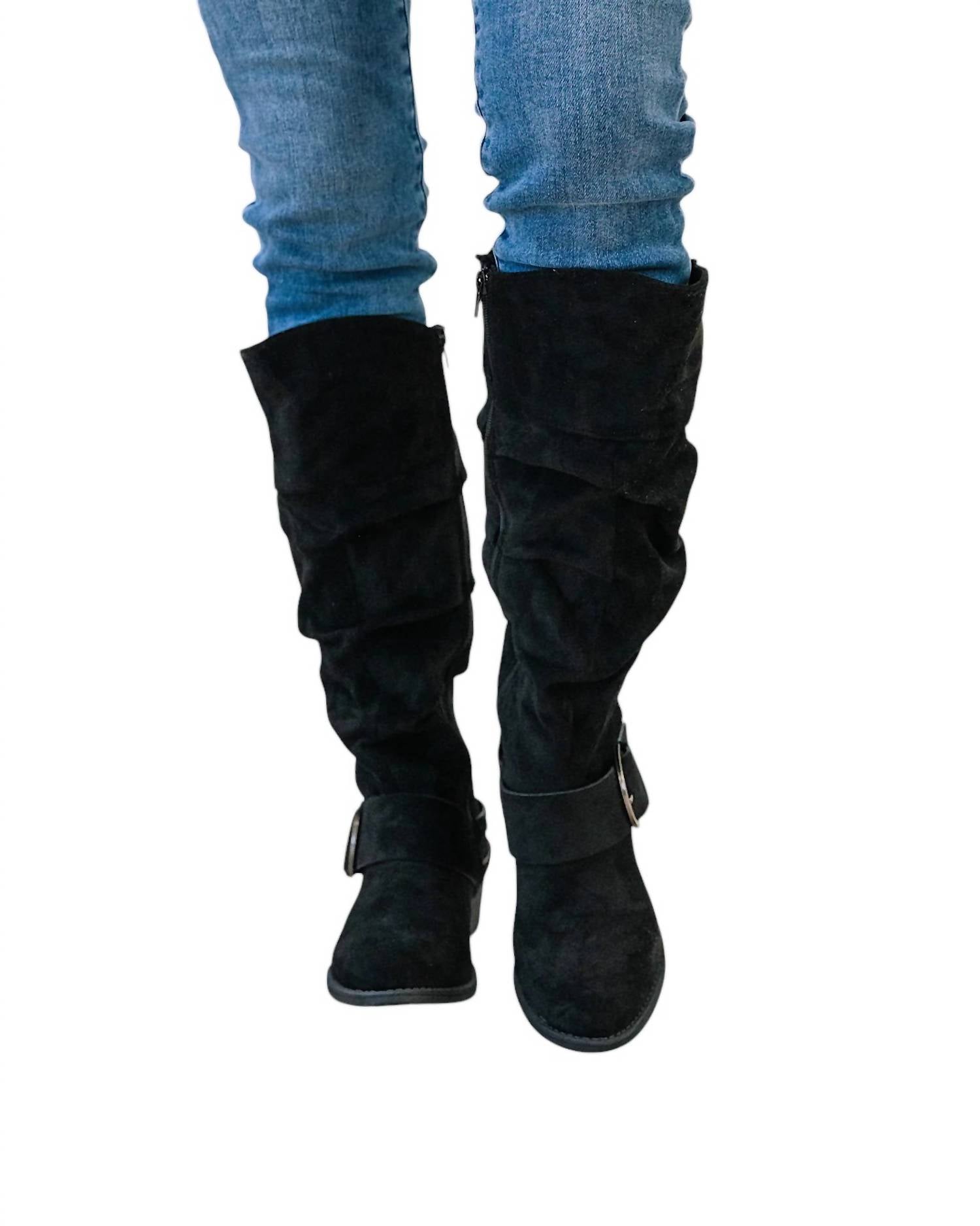 Эти сапоги до колена имеют верх из искусственной замши с боковой молнией для легкого надевания/снимания. Они имеют приблизительно 1,5-дюймовый наборный каблук и пряжку-ремешок для дополнительного стиля. Импортные.