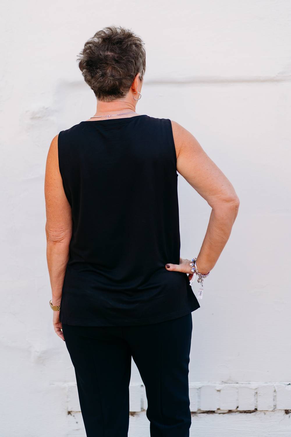 Эта классическая майка идеально подходит для многослойной одежды и достаточно симпатична, чтобы носить ее отдельно. Представляем майку Scoop Neck Solid Knit от Multiples, базовую вещь для любого гардероба в шикарном черном оттенке. Эта майка без рукавов имеет вырез-халтер, сочетающий стиль и универсальность. С удобной застежкой-липучкой она создана для непринужденного ношения. Наслаждайтесь комфортом и качеством этой майки с однотонным узором, идеально подходящей для непринужденной повседневной носки.