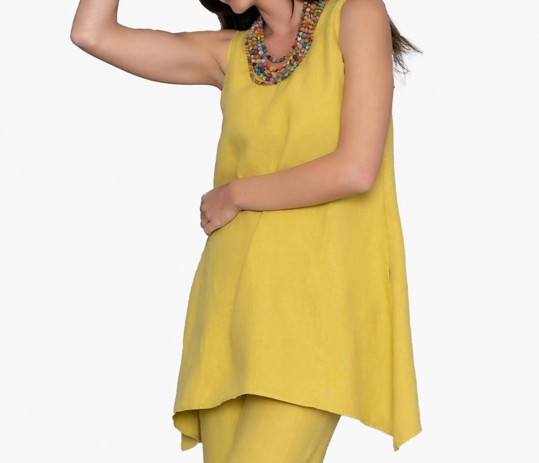 Овальный вырез, А-силуэт, из прохладного, воздушного льна. Карманы в боковых швах. Изогнутый подол. Длина по спинке составляет примерно 32 дюйма для размера S. Модель выше ростом 5 футов 11 дюймов в размере S, но эта туника одинаково хорошо смотрится и на невысоких женщинах. 100% лен. Импортная. Машинная стирка.