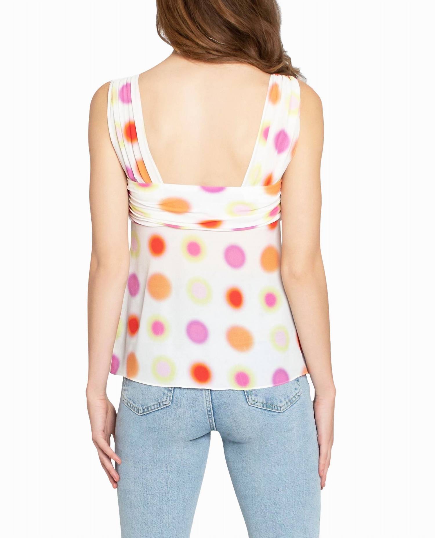 Этот шелковый топ Radiant Aura изготовлен из смеси 65% шелка и 35% вискозы. Безрукавный дизайн с круглым вырезом и изысканным узором в горошек. Плиссированные бретели и сборка спереди подчеркивают женственный силуэт. Ручная стирка, сушка в подвешенном состоянии, глажка теплым утюгом или химчистка для поддержания формы. Идеально подходит для любого случая.