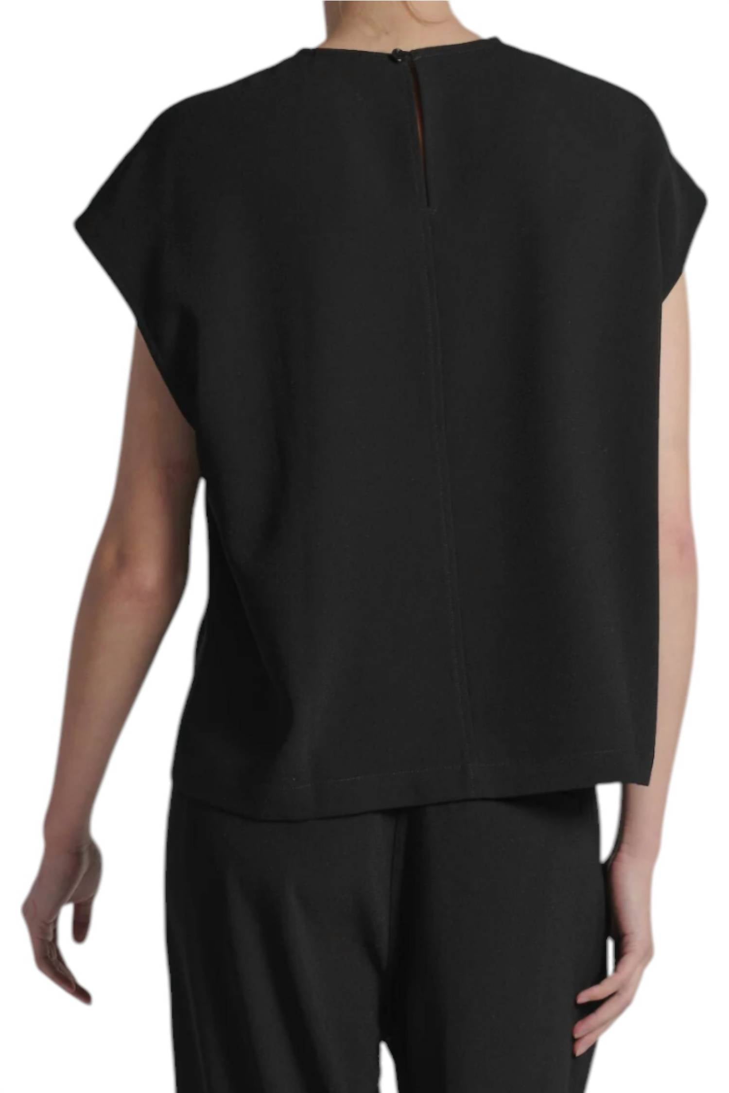 Воплощение изысканного комфорта и вечной элегантности в оттенке Powder Grey Crepe. Свободный верх с короткими рукавами изготовлен из роскошного полиэстерового крепа. Предлагает легкий и не мнется внешний вид. Дизайн с круглым вырезом дополняется застежкой на одну пуговицу сзади. Обеспечивает изысканную, но удобную посадку. Для ухода требуется только химчистка.