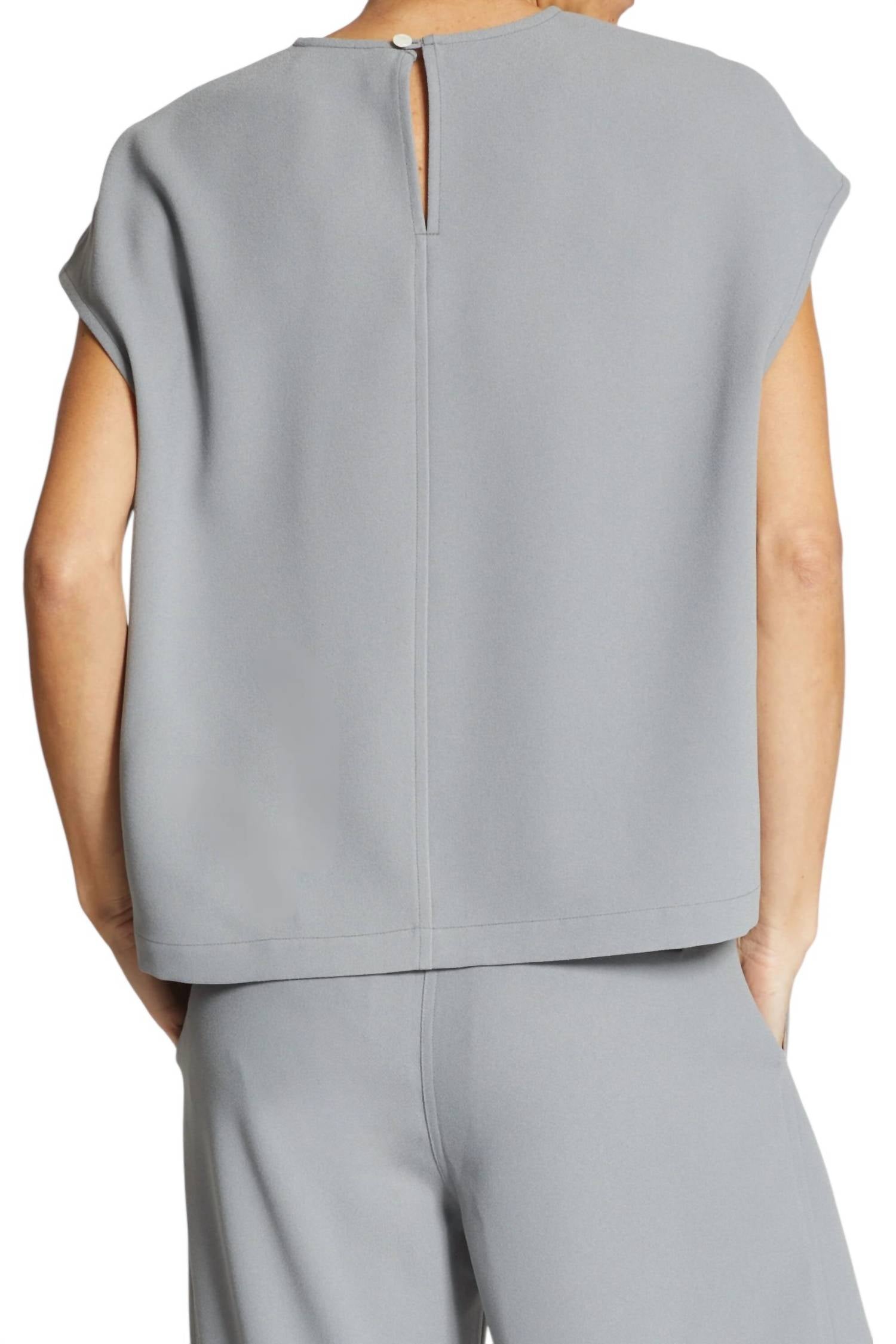 Воплощение изысканного комфорта и вечной элегантности в оттенке Powder Grey Crepe. Свободный верх с короткими рукавами изготовлен из роскошного полиэстерового крепа. Предлагает легкий и не мнется внешний вид. Дизайн с круглым вырезом дополняется застежкой на одну пуговицу сзади. Обеспечивает изысканную, но удобную посадку. Для ухода требуется только химчистка.