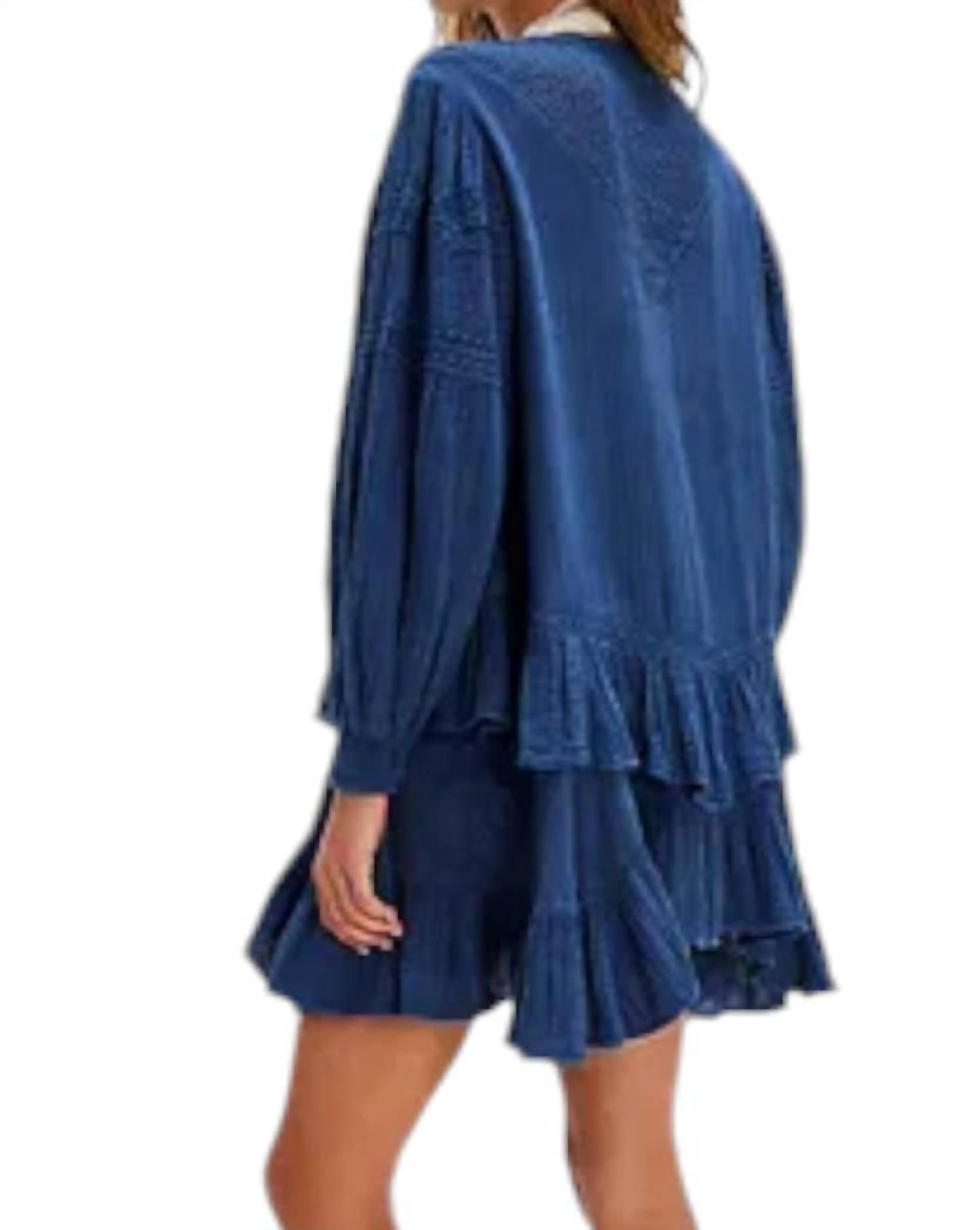 Женственное и оборчатое мини-платье. Мягкая хлопковая ткань с развевающимся силуэтом. Рукава в форме воздушных шаров с манжетами. Застежка на пуговицы спереди и кружевная отделка. Многоуровневая отделка оборками. Подкладка для дополнительного комфорта. Универсальный дизайн для дневного и вечернего ношения. 100% хлопок.