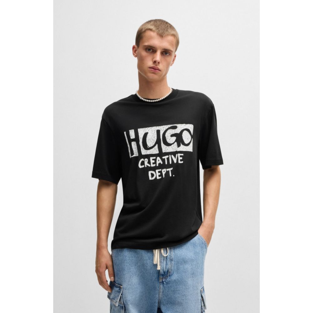 Футболка из хлопкового джерси с логотипом HUGO, черный