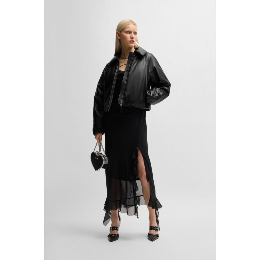 Куртка-баллон из стеганой искусственной кожи HUGO, черный
