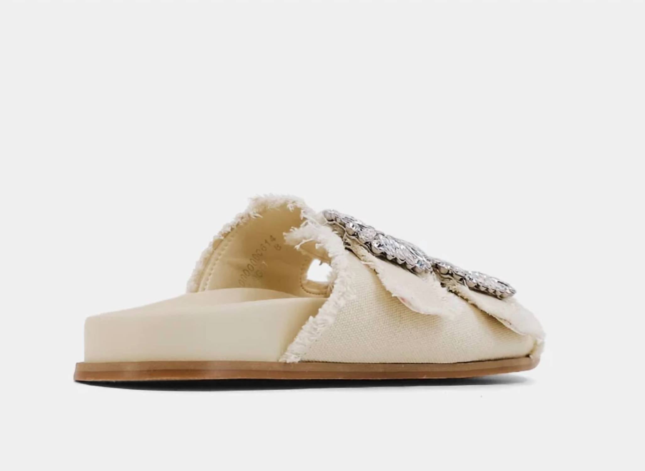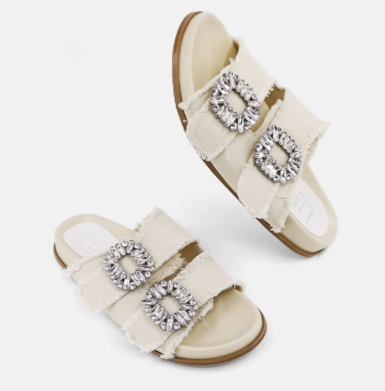 Эти сандалии проведут вас от завтрака до ужина и всего, что будет между ними. Откройте для себя сандалии Bridget от SHU SHOP, ваш новый выбор стиля и комфорта. Эти сандалии, изготовленные из ультрамягкой искусственной кожи в сочетании с потертой текстильной тканью, имеют шикарные пряжки, украшенные мерцающими кристаллами для нотки элегантности. Разработанные из универсального бежевого холста, они станут идеальным дополнением к вашему уикенду. Наденьте формованную стельку для легкого, стильного опыта.
