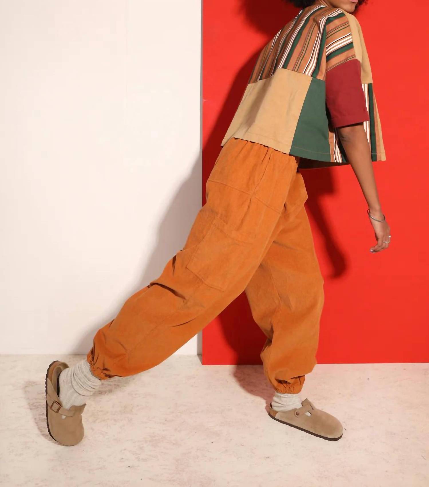 Брюки Everett имеют свободный эластичный пояс и объемные штанины, переходящие в эластичную щиколотку. Боковые карманы, накладные карманы в практичном стиле и кокетку. Изготовлены из хлопкового вельвета цвета ржавой охры. 100% хлопок. Машинная стирка в прохладном щадящем режиме с вещами похожих цветов. Рост модели 5 футов 11 дюймов / 181 см, на ней размер UK 8.