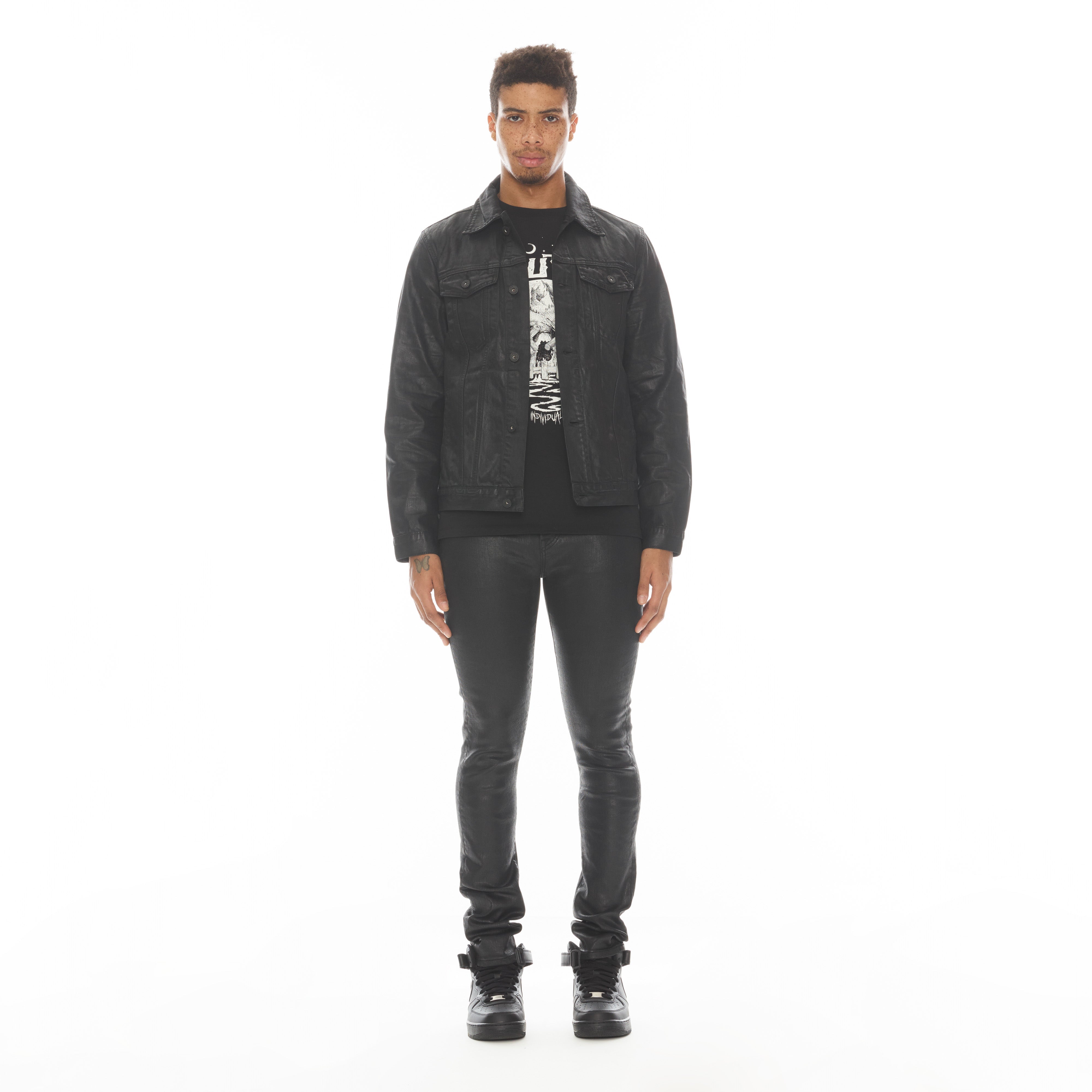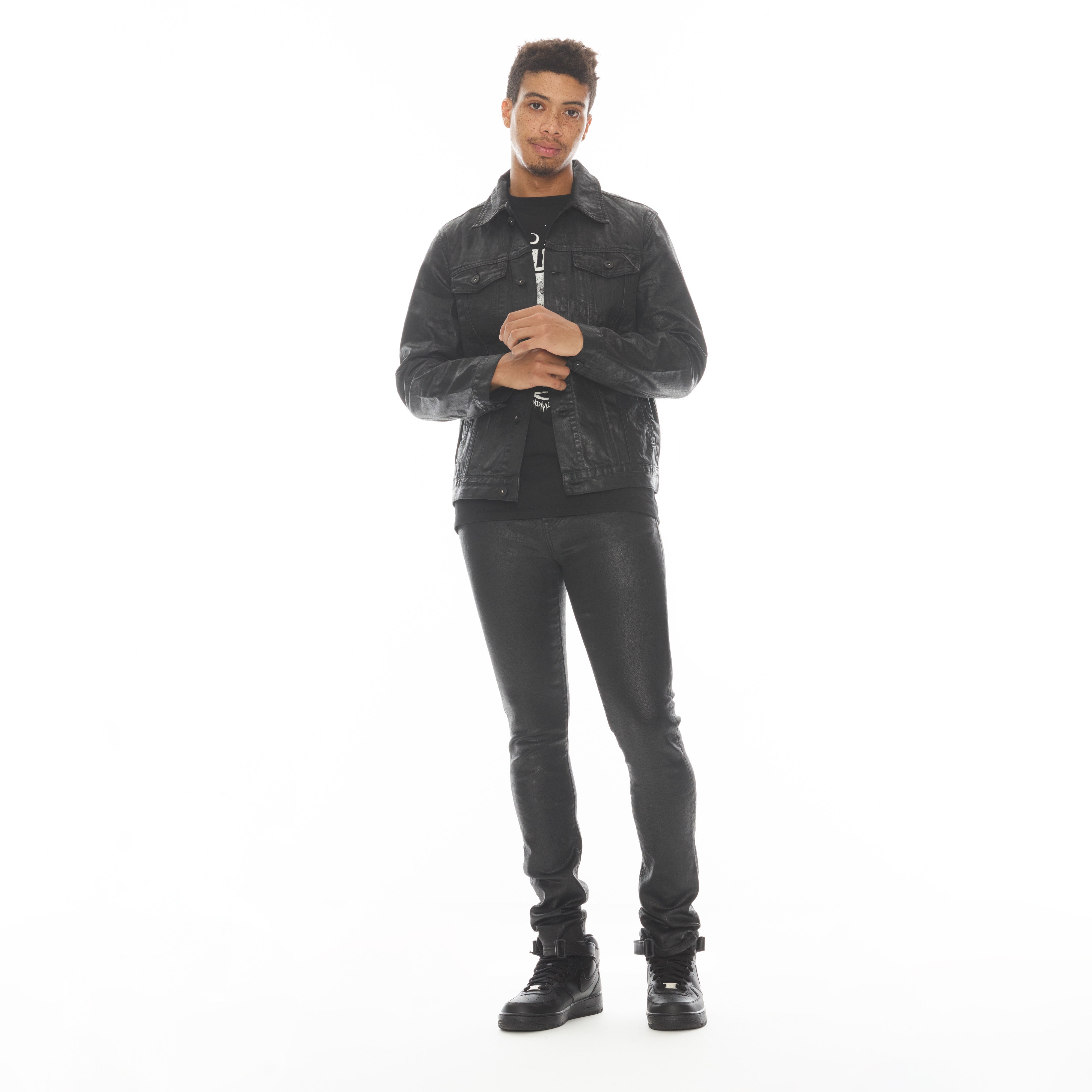 Эта черная стрейч панк суперскинни модель имеет узкую штанину от бедра до щиколотки. Эта модель изготовлена ​​из высококачественного стрейч-денима, а затем обработана воском. - 92% хлопок, 4% полиэстер, 2% спандекс - ширинка на молнии - 5 карманов