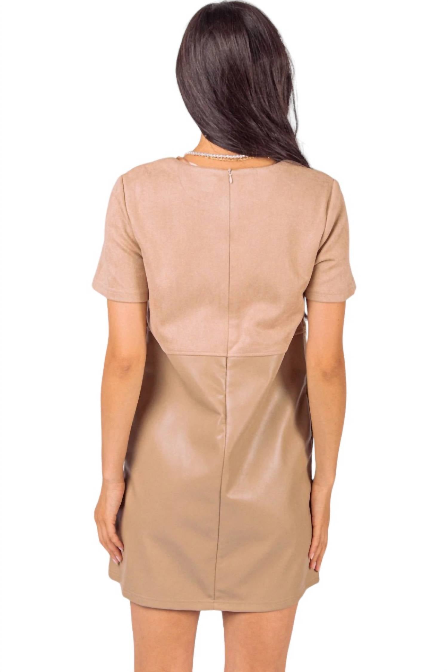 Шикарная и изысканная вещь. Сочетает в себе комфорт и стиль. Уникальное сочетание роскошной замши сверху и гладкой кожи снизу. Создает динамичный контраст. Предлагает непринужденный, но привлекательный силуэт. Теплый бежевый оттенок. Застежка-молния сзади. Круглый вырез и короткие рукава. Идеально соответствует размеру.