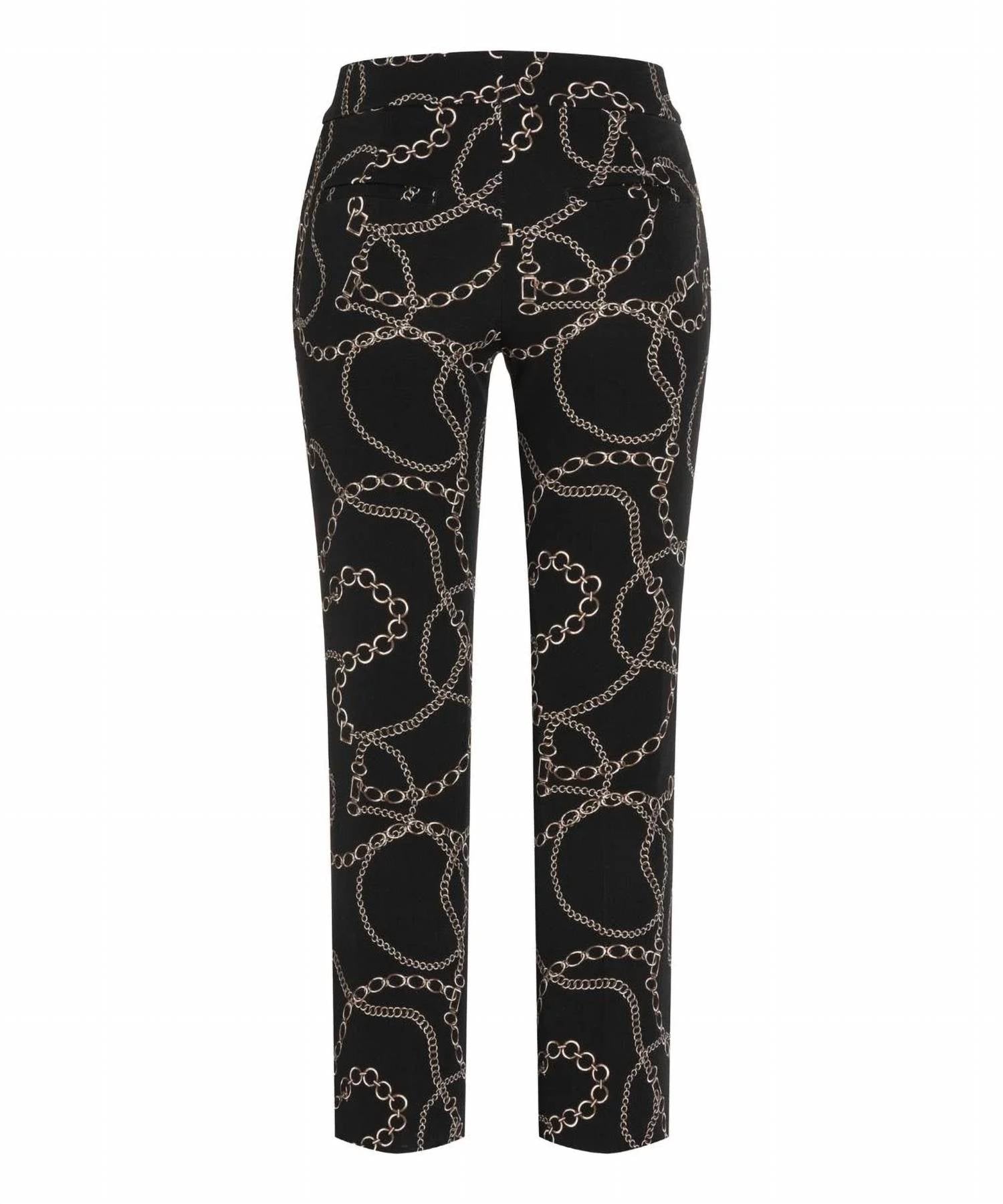 Эти брюки имеют сплошной цепной принт и облегающую укороченную длину со слегка расклешенными штанинами для современного силуэта. Сзади украшены двумя прорезными карманами для дополнительного стиля. Изготовлены из 90% полиэстера и 10% эластана, их можно стирать для легкого ухода.