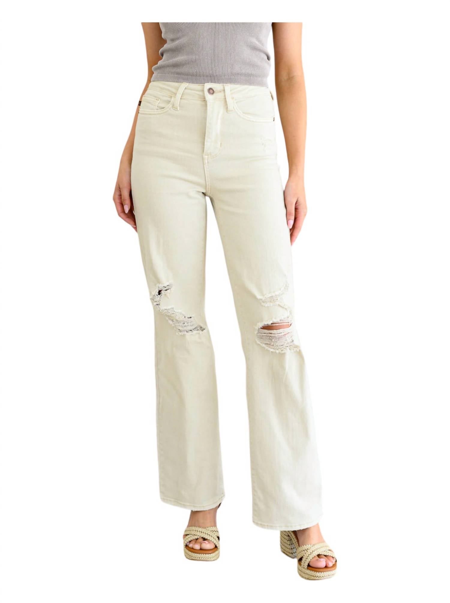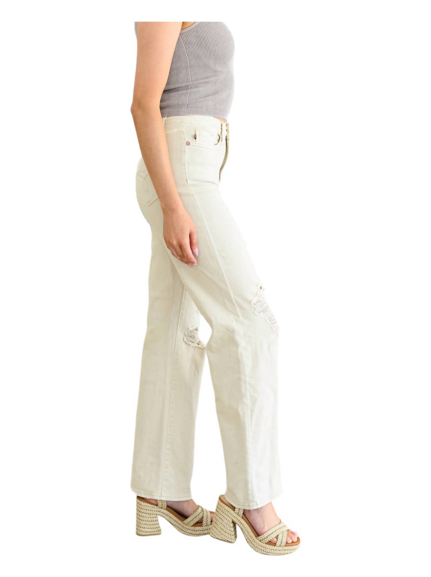 Высокая посадка. Застежка-молния. Окрашено в готовом виде. Состарено. Прямой силуэт в стиле 90-х. 93% хлопок, 6% полиэстер, 1% спандекс.