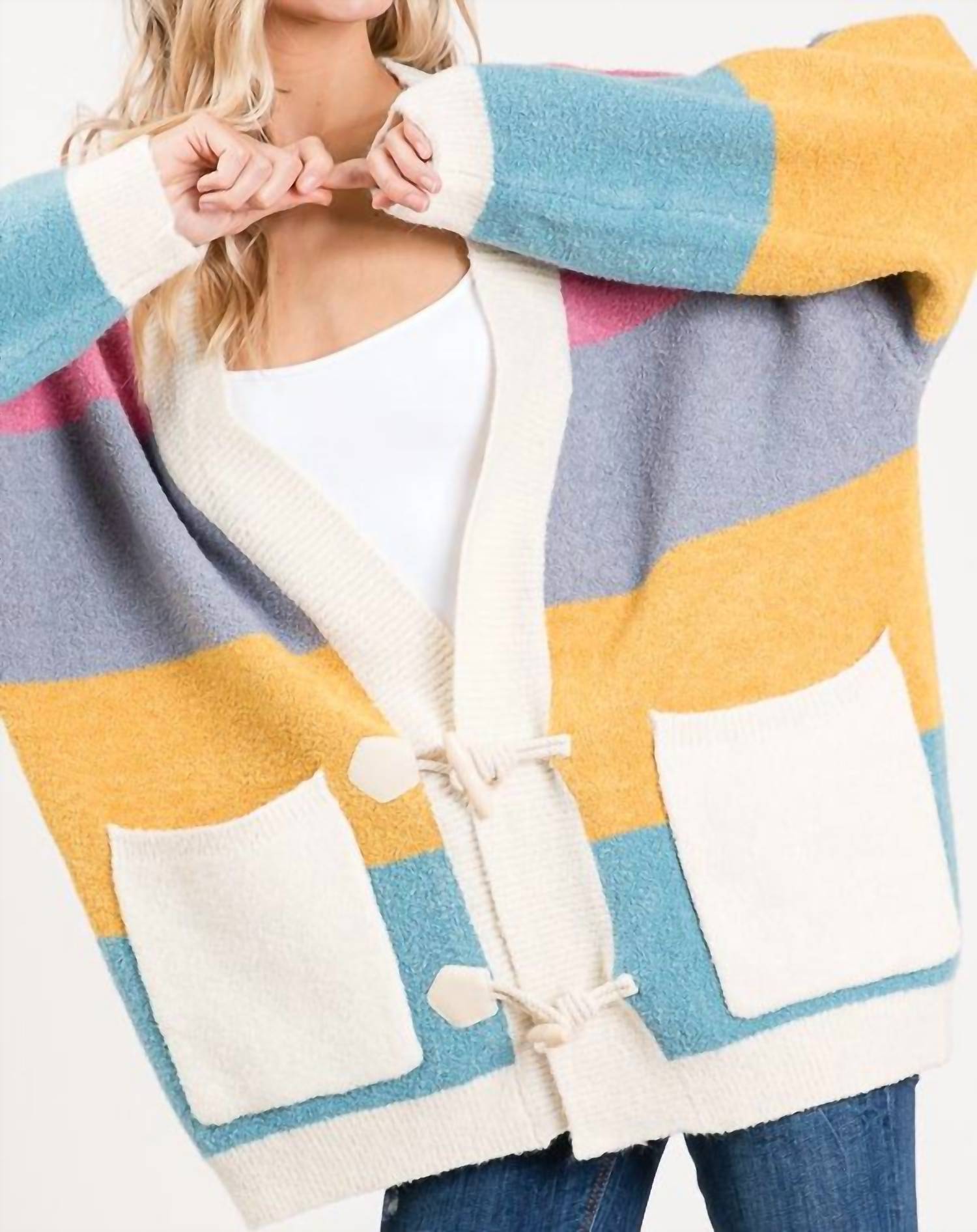 Полосатый принт. Этот кардиган имеет длинные рукава, два больших передних кармана, застежки-лягушки и мягкую трикотажную ткань. Маленькая грудь 42" Длина 27", Средняя грудь 44" L 27", Большая грудь 46" L 27", 1XL Бюст 50" Длина 29", 2XL Бюст 52" Длина 29", 3XL Бюст 54" Длина 29". 30% Акрил 30% Нейлон 25% Вискоза 15% Шерсть. Это свитер средней или высокой плотности. Импортный. Только сухая чистка.